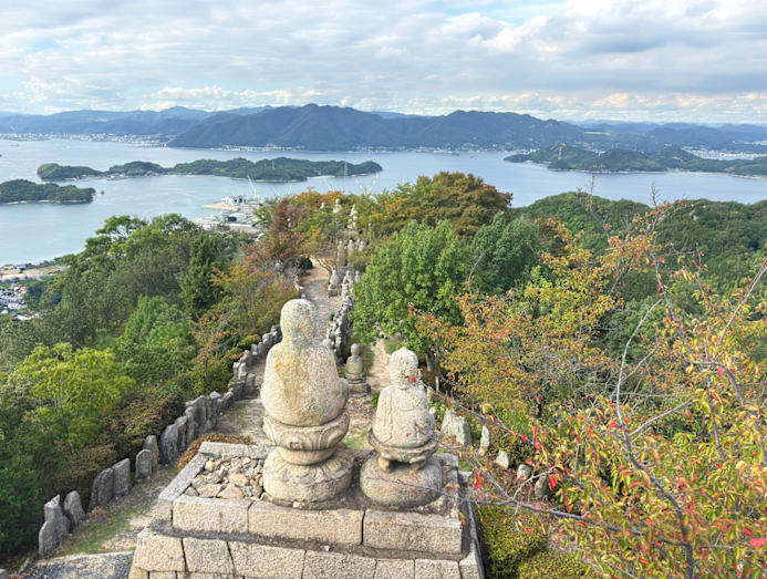 Mount Shirataki on Innoshima is a popular detour off the main cycling route. The mountain is famed for its collection of 500 Buddhist stone figures, established by a former abbot of a local temple around the mid-19th century. The summit also offers one of the best 360-degree views of the entire Seto Inland Sea National Park area.