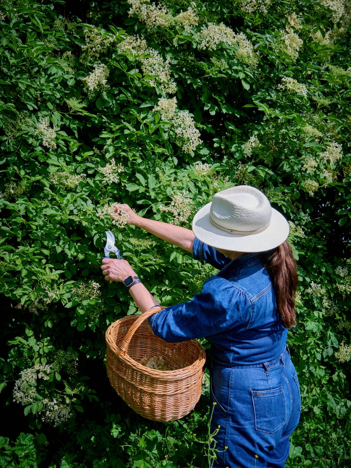 The chateau, which is being carefully restored in stages by owner Marie-Antoinette Rojon, has several well-appointed rooms, each in a different colour scheme and styled with antique or modern furniture. While we could have easily spent all our days just lolling about, the morning after our arrival we found ourselves armed with rubber boots and St-Germain-branded Opinel shears, tramping through the Ardeche countryside with Eric Tourain, St-Germain’s genial master blender. The previous night’s rain (and touch of hail) had unexpectedly yielded to a textbook-perfect day. Wildflowers swayed underfoot and horses grazed in a nearby field under dazzlingly blue skies. The air was filled with the honeysuckle perfume of elder trees festooned with cream-coloured flowers, their tiny petals still freighted with glistening pearls of rainwater.