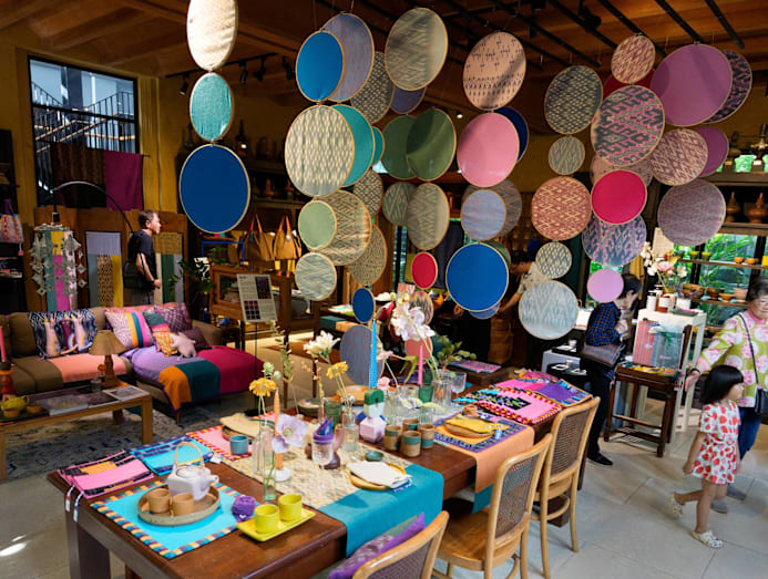 Kalm Village, an extraordinary arts, crafts and culture centre in the Old City since 2021, has the welcoming quality of a traditional northern Thai home. Its two garden courtyards are surrounded by two- and three-story buildings of reclaimed teak and grey brickwork in a pattern resembling a woven basket. They house a cafe, a restaurant and a library, and galleries with rotating exhibits and a permanent collection of ancestral textiles from northern Thailand and across Asia. There are also boutiques with handmade crafts like blue and yellow sorghum miniature brooms by the Thai brand Baan Boon (320 baht) and intricate silver jewellery by Miao people, a Chinese ethnic minority (earrings, 5,500 baht).