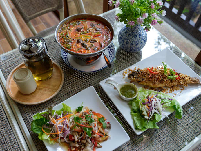 The city has a host of excellent vegetarian and vegan restaurants, including Pun Pun, Aum, Alchemy and Hummus. But why not opt for organic fare with a regal back story (and non-veg options) at the Royal Project Restaurant? The Thai king in the late 1960s created the Royal Project in part to help hill tribe communities replace opium crops with sustainable farming of produce, coffee and livestock. That led to the construction of a handful of restaurants in northern Thailand like this 20-year-old hidden delight near the Chiang Mai Zoo. Open for breakfast and lunch and frequented by well-dressed locals, the bright and minimalist space serves a lunch set of a delicious rainbow trout with a turmeric rice platter, with butterfly-pea iced tea (270 baht), and one of the best smoked-duck salads anywhere (200 baht).