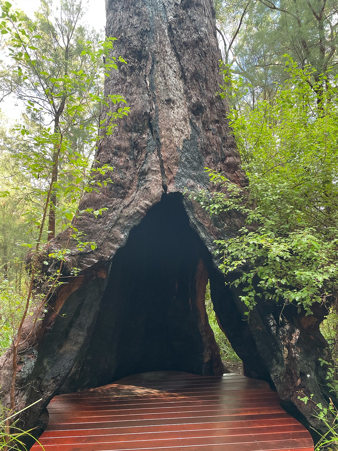 The ancient trees are protected now in the Valley of the Giants Park, a few minutes away from Denmark town centre. The reserve is connected through a steel walkway suspended 40 metres above the ground. I found the bridge gently rocks as more and more people walk on the track and affords magnificent views of the canopies and horizon.