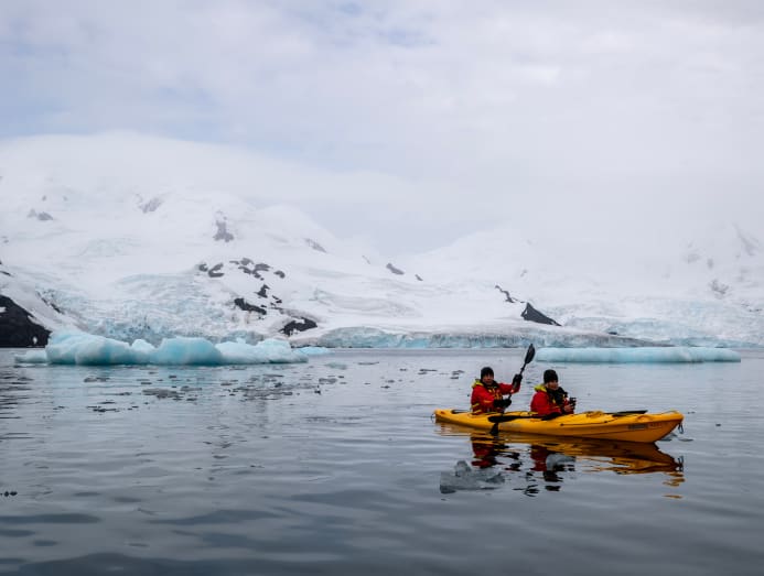 And so, there may be, in the end, many reasons for visiting Antarctica. The sight of a scrum of penguins porpoising through the water as we kayaked between icebergs through the mirror flat waters of the Rallier Channel is one. Or clambering into a state-of-the-art seven-person U-Boat Worx submersible and plunging 110m to the bottom of a live volcanic caldera at Deception Island. (Yes, really.) Watching a pod of dolphins race ahead of the Venture’s bow as we sailed through the Beagle Channel is another.