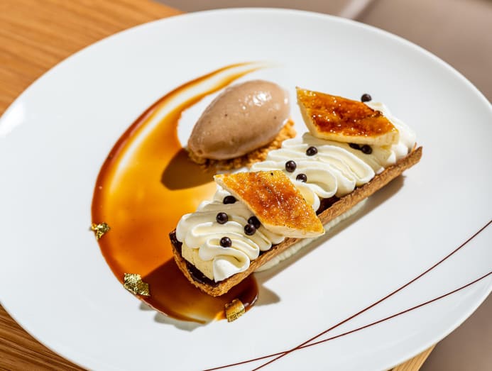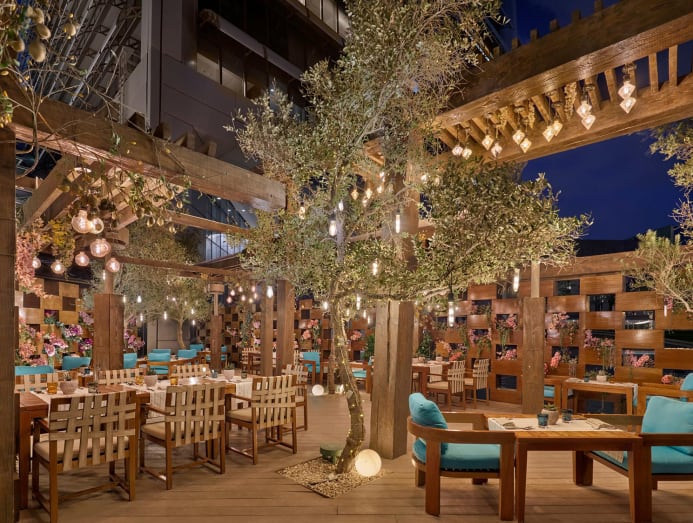 Standouts include a rich moussaka, reimagined with tender BBQ short rib and deep in slow-cooked flavour, while the crispy, golden Greek potato chips are the perfect accompaniment. Pastas are equally well-executed, notably the conchiglioni shells with braised octopus, cherry tomato, capers and oregano for true Hellenic tastes. Dining in seats surrounded by olive trees on the terrace, you can almost see yourself in Santorini.