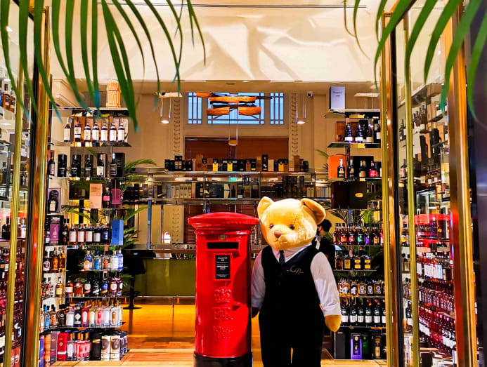 It’s hard to miss the classy space, especially with the red London postbox and life-sized bear (no relation to the Fullerton's mascot) at its entrance, surrounded by shelves of glistening bottles.
