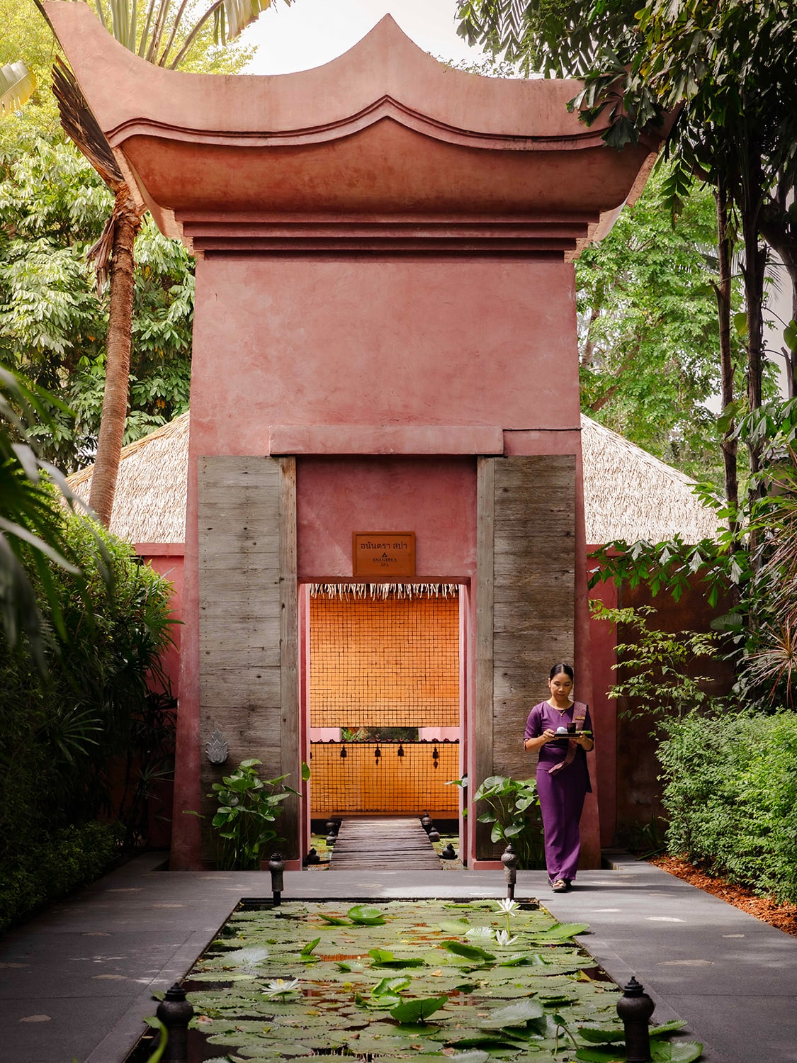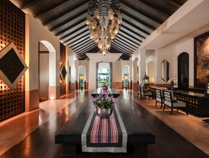 This beachfront resort is near the vibrant Fisherman’s Village but when you’re lounging in the airy garden salas, it feels like you’re in a secluded villa. Trees are allowed to flourish naturally, including a sculptural one by the hotel's driveway, the setting where Mook (Blackpink’s Lisa) and Gaitok ( Tayme Thapthimthong) filmed many of their scenes. Thick layers of tropical foliage create a paradisiacal feel — the handiwork of the inimitable Bill Bensley, who originally did the landscape architecture as well as designed the spellbinding spa. His team returned to the property to spruce things up before filming for The White Lotus commenced.