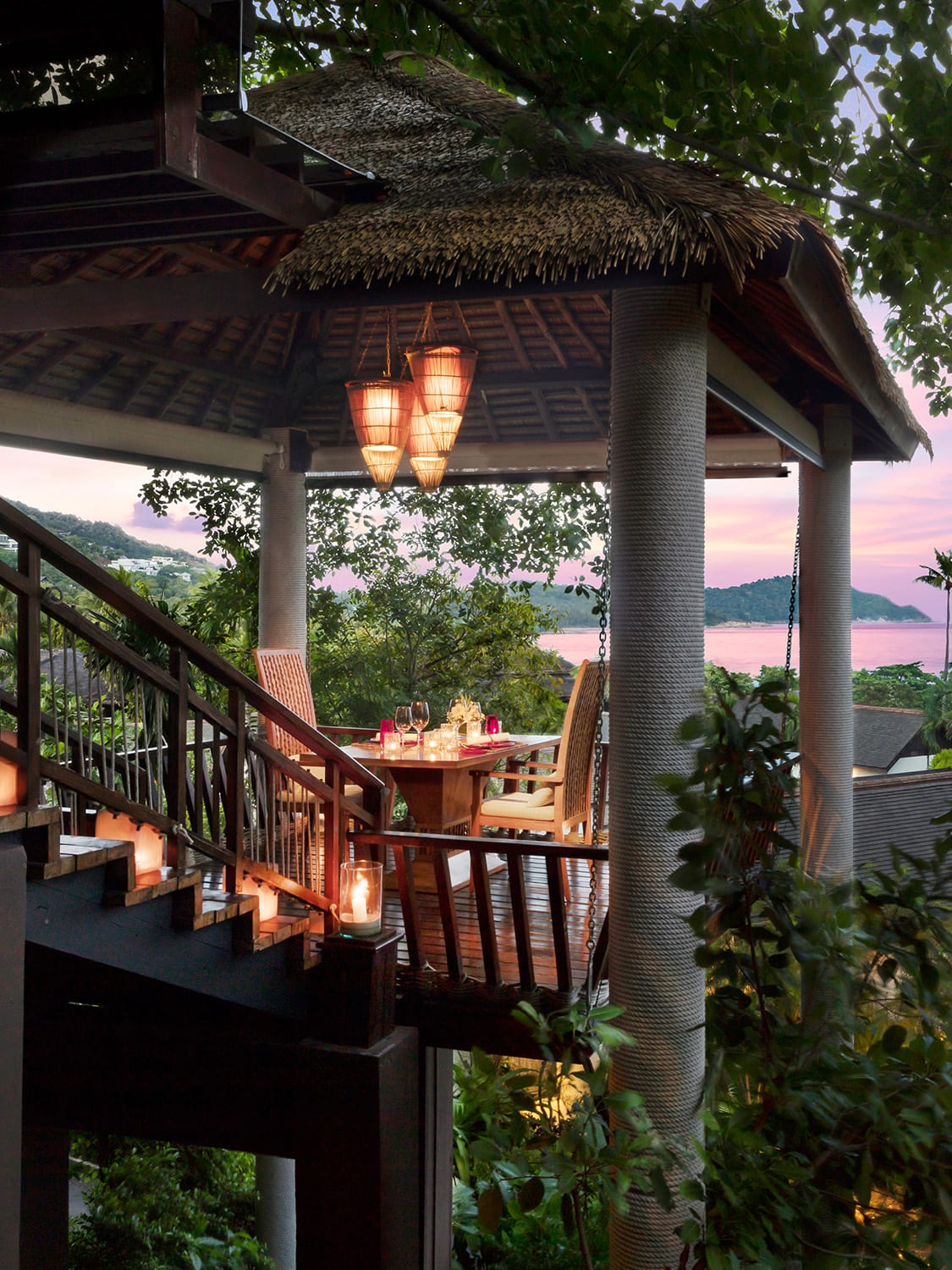 The vantage point I loved most, however, was The Singing Bird Lounge. This charming al fresco bar with thatched hut roofs and rustic lanterns is a lovely place to enjoy the remains of the day. Cocktail in hand, I savoured a panoramic view of the water and islands beyond, enjoyed the melodic birdsong in the background, and watched as the sky transformed from light blue to lilac. It’s the kind of place that allows you to truly enjoy the present, and perhaps imagine that you’re a character on The White Lotus.