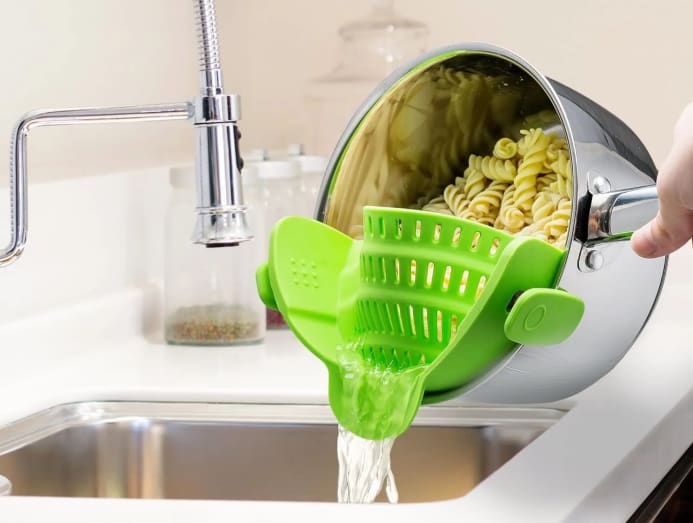 Whether you’re in the throes of prepping food for your guests or cooking a simple meal for the family, few things can be as frustrating as having pasta or vegetables drop into a dirty sink as you’re draining out water. The Snap ’N Strain Strainer helps make this a thing of the past thanks to its innovative clip-on design, which attaches securely to pots, pans, and bowls. This strainer is heat-resistant and dishwasher safe. It’s also compact, making it easy to store after cleaning.