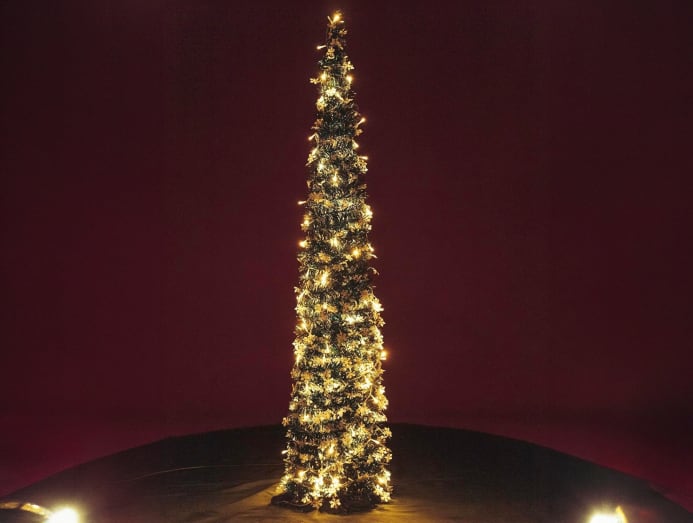 This 1.5m collapsible spiral tinsel tree easily fits small living rooms. Featuring sparkly snowflake-shaped ornaments and a 10m set of battery-operated LED lights, you have everything you need to quickly add festive feels to any space.