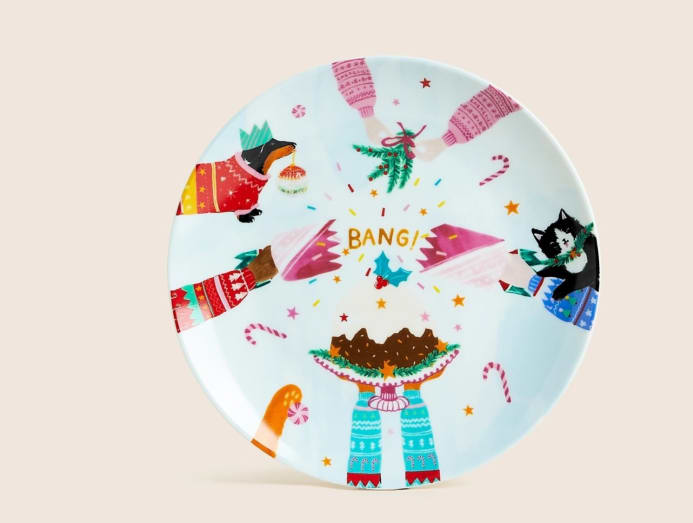 Serve your guests a healthy dose of holiday cheer with these vibrant side plates. Sold in a set of four, each plate illustrates a different festive scene. Made from porcelain, the plates are resistant to cutlery marks and are both microwavable and dishwasher-safe.