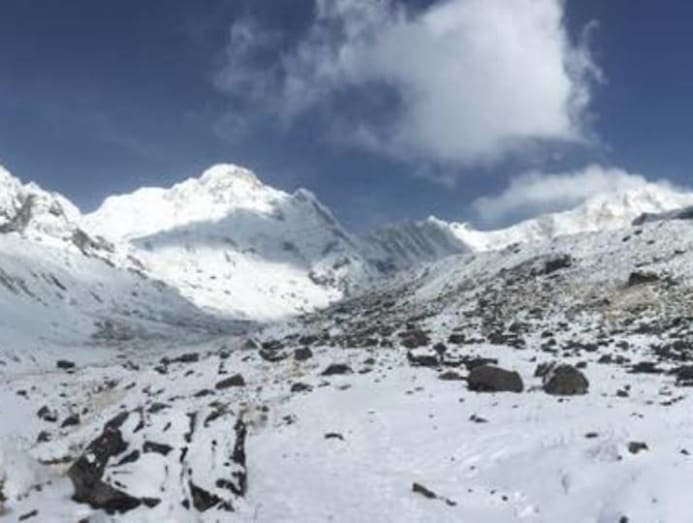 View from the Annapurna Base Camp after a 7-day trek to the top. (Photo: Ainslee Asokan)