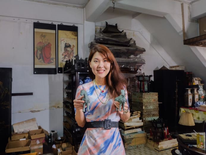 “These were my imaginary companions and the shophouse was like our living room. When I return from school, almost every day, I will nap on this lazy chair,” the management consultant, who's in her 30s, said as she showed me around Ying Kee Hong, an antique shop her grandfather started in 1956, in Geylang.