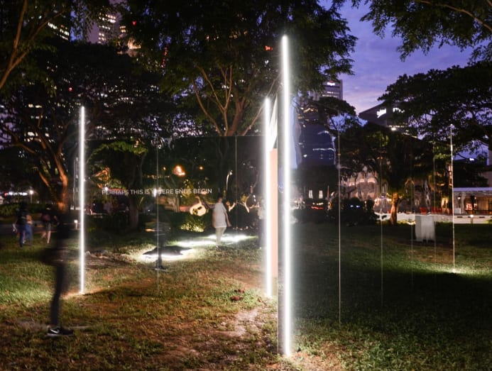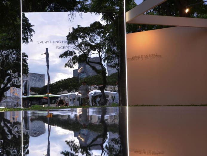 Another project highlight was the sculpture commissioned by National Gallery Singapore (NGS) for Light to Night festival, called Between Two Worlds. It was stationed at Esplanade Park, surrounded by these historical war monuments, the Padang and the CBD.