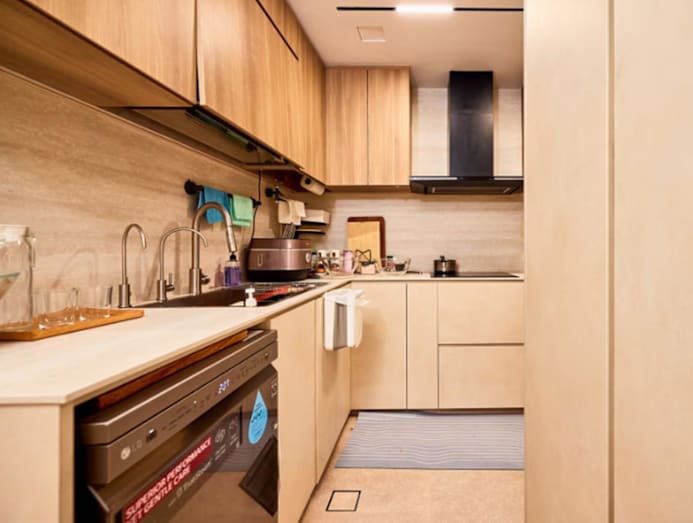 The kitchen, once open concept, has been walled up to fit more cabinets. Not the most ideal – the couple misses the openness – but as Tan admitted: “Storage is more important.”