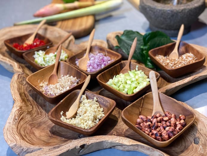 She shows how to prepare a traditional Thai/Vietnamese snack called miang kham, which translates to “one bite wrap”.