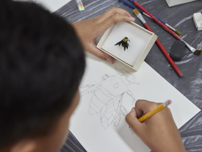 Through a programme with non-profit Art Outreach, Zhang leads two-day workshops for children at neighbourhood education centres. Her sessions combine watercolour art with insect anatomy, teaching kids about the beauty and complexity of local species, from dragonflies to carpenter bees and ants, and the ecological role of local insects.
