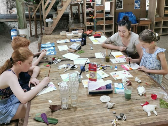 She also introduced children to the coconut rhinoceros beetle, the largest beetle she could find on the island, and encouraged them to interact with it. “With encouragement and security, children would reach out and give the little creature a gentle stroke,” said Zhang.