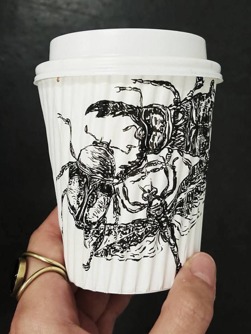 In 2015, she realised that insects and art could spark conversation, and she began to illustrate insects on used coffee cups and tote bags. While interning at Museum of Contemporary Art Taipei, she carried one to work, and her colleagues encouraged her to hold a public event – her first time sharing her love for insects publicly. People were fascinated by what she was doing, and her colleagues supported her by modelling her bags and her art.
