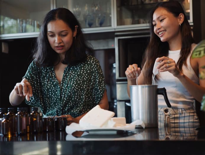 Cheyenne Naidu and Sarah Wee are cousins who started candle brand Nitwick. (Photo: Johnboy Iype John)