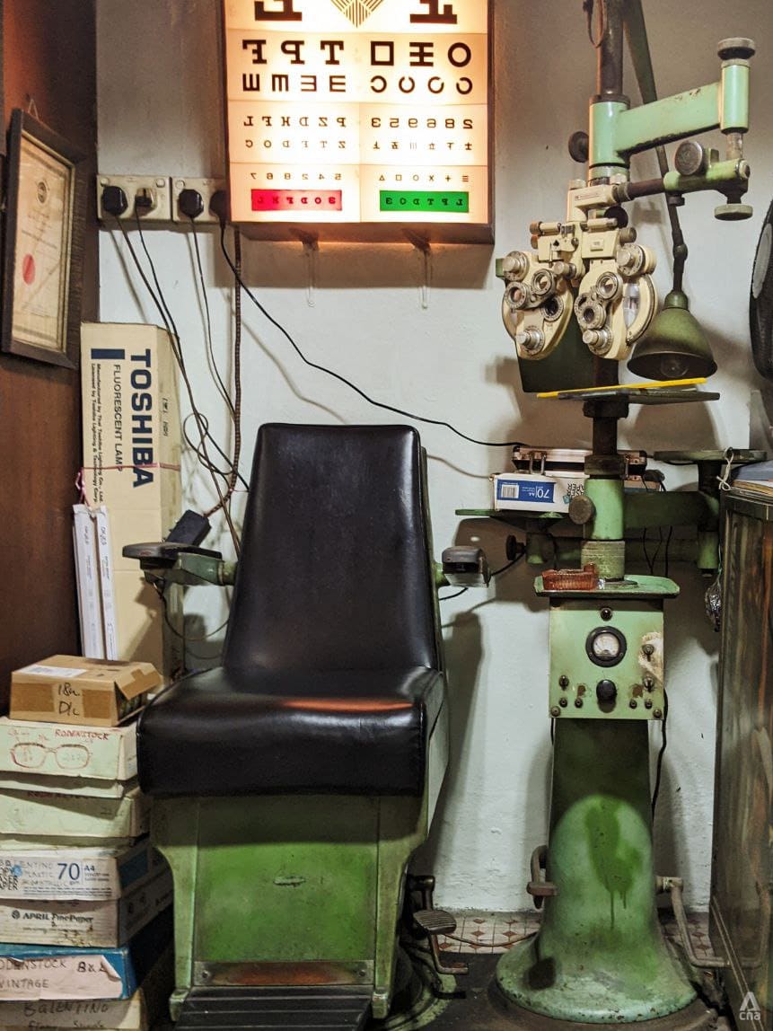 This makes Lim Kay Khee Optical House an anomaly. Located along Balestier Road, the establishment concerns itself with neither self-service racks nor designer brands. In their place are patterned floor tiles and machinery preserved from the 1960s, as well as a palpable lack of air-conditioning.