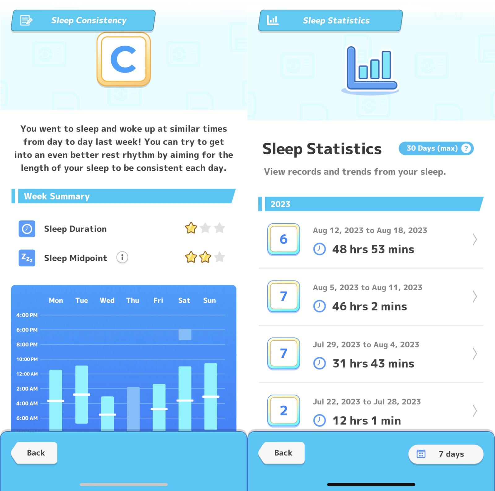 If you love numbers, charts, progression tracking, grades and more numbers, you'll love the Sleep Consistency and Statistics functions. I'm not going to elaborate on them because Pokemon Sleep failed me – and graded me a "C" at best for my sleep efforts. Consider me triggered.