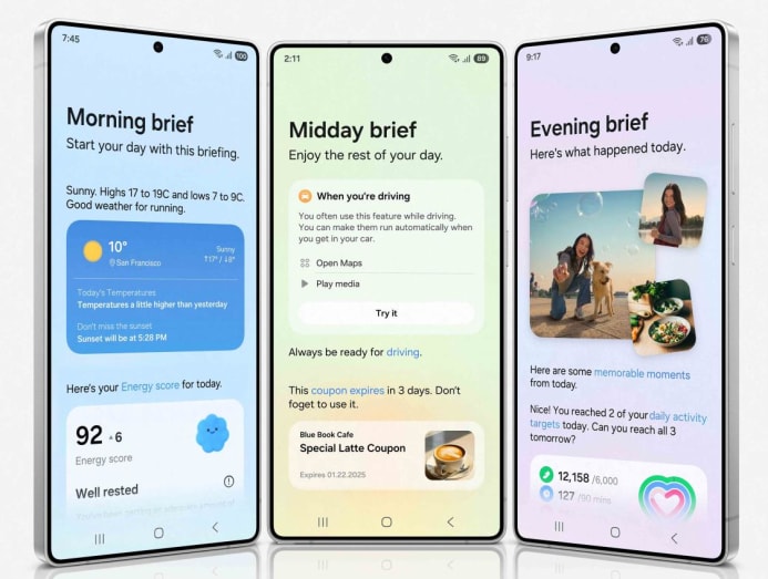 The Galaxy S25 will offer a more personalised AI experience. For example, its "Now Brief" service – which makes recommendations to users based on personalised data that is stored and processed on the phone for privacy reasons – will display a suite of customised items such as calendars, news and bedroom air temperature and carbon dioxide levels, Park said.