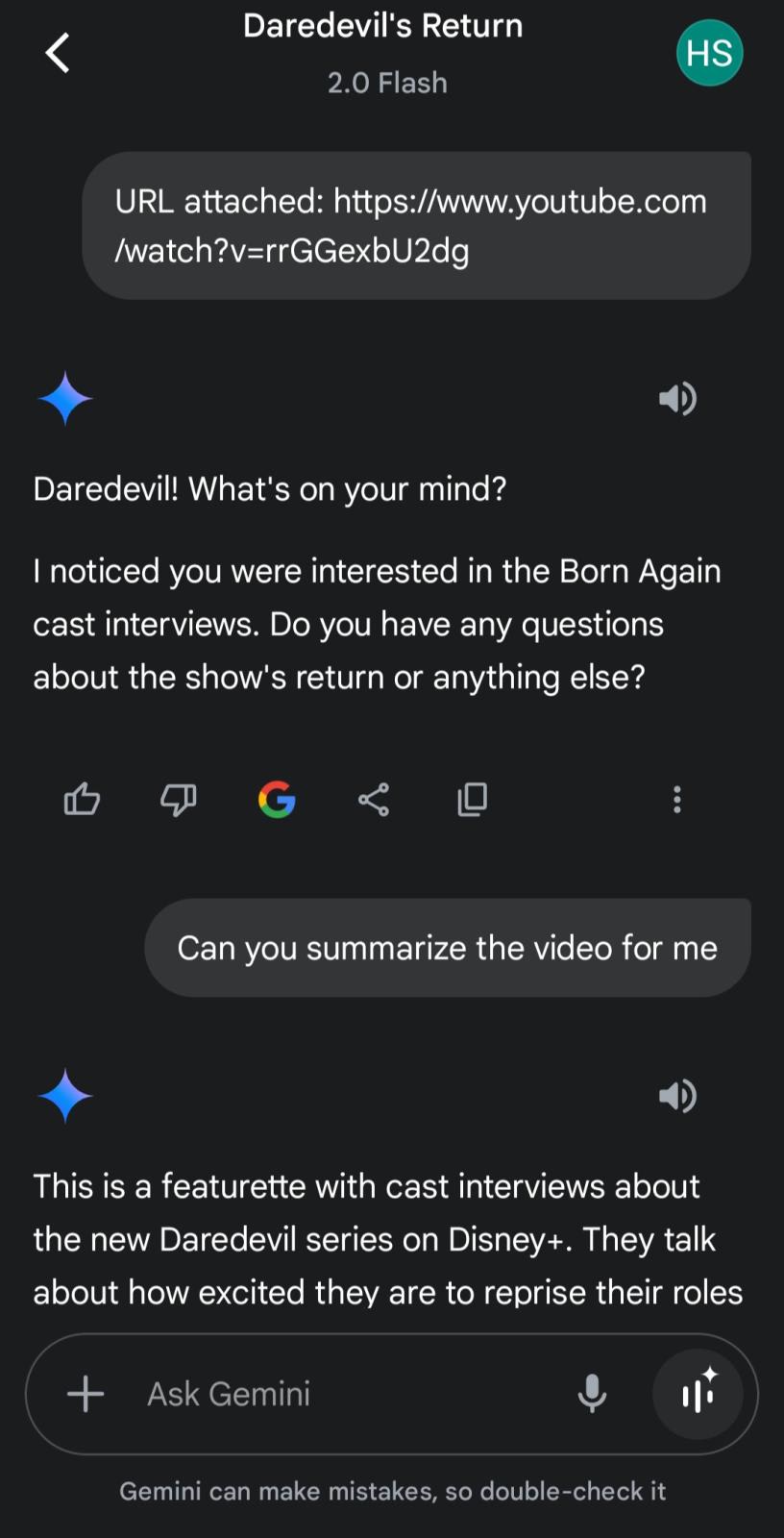 Through its Talk Live feature, I was able to get a summary of a video interview featuring the cast of Daredevil: Born Again with a single voice command.