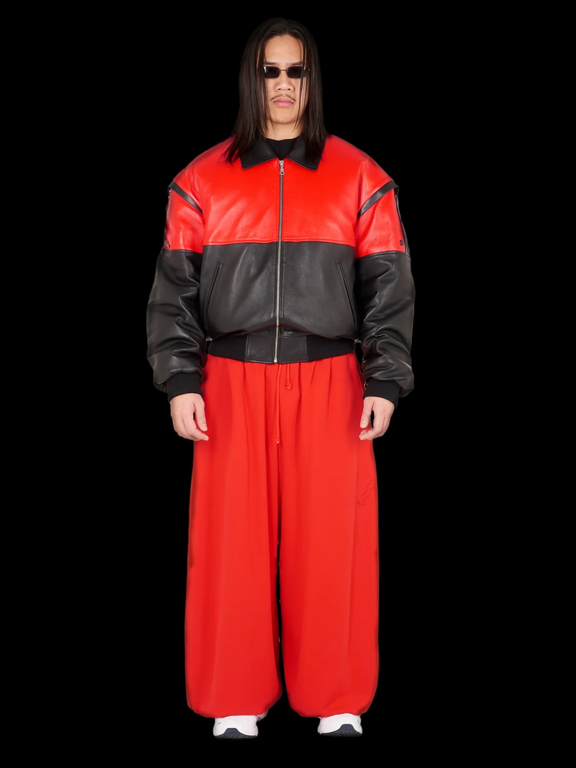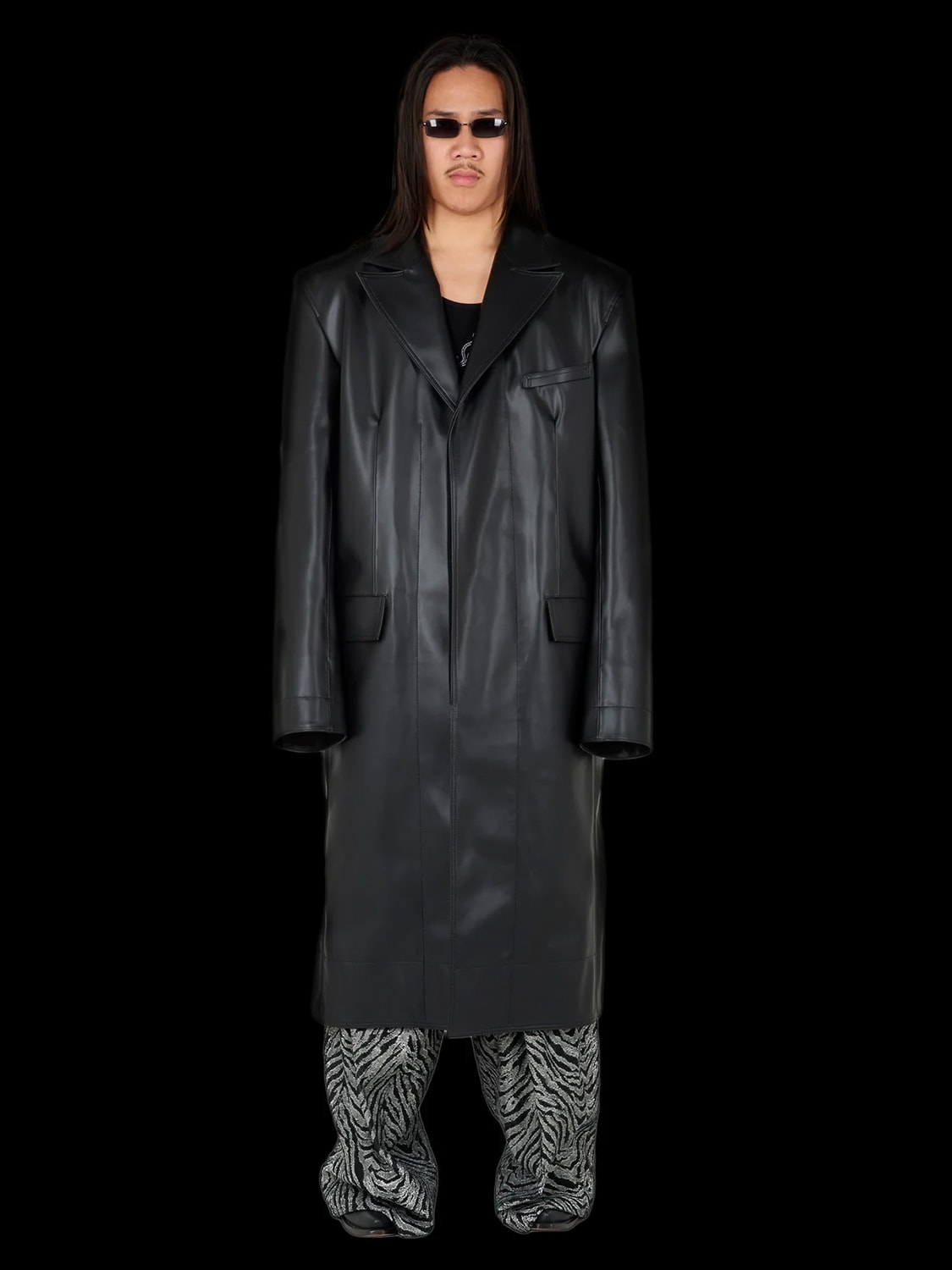La’s clothes are unabashedly macho: Think faux leather jackets of 1980s Hong Kong gangster flicks, but monster sized; pimp print viscose shirts with matching print pants with a sinister cartoonish glee; streetwear but in the baggiest volumes. Think of every masculine stereotype then add tons of swagger and menacing masculinity, punk and old school hip hop. The iconoclastic singer Billie Eilish is a fan.