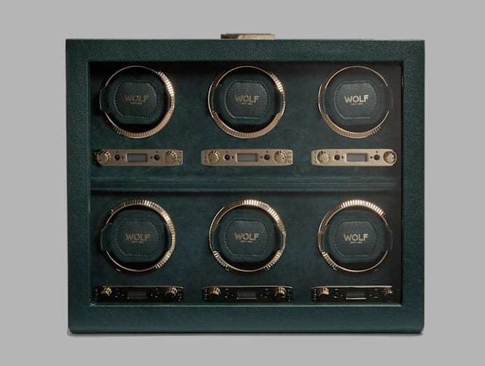 For British brand Wolf, the magic lies in the details most collectors forget to think about. Its winders offer variable rotations like many others, but the patented Turns Per Day technology goes further: it tracks exactly how many rotations your watch receives, ensuring it’s wound according to manufacturer specifications (helpful if you skipped the manual, which — let’s be honest — you probably did). Once a cycle is complete — winding, pausing, and a sleep phase — the winder automatically returns the watch to its upright position, so it always greets you looking its best.
