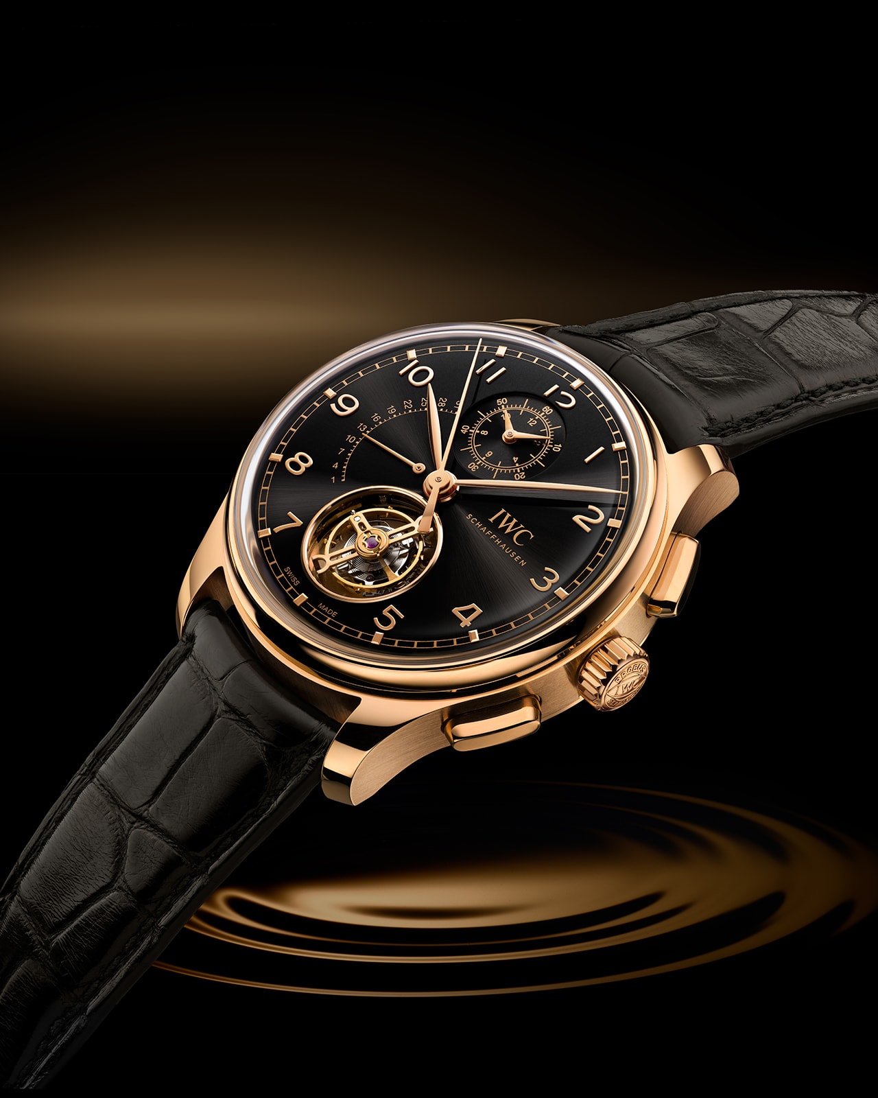 The Schaffhausen watchmaker brings three of its most sophisticated complications together in the Portugieser Tourbillon Retrograde Chronograph, a 100-piece limited edition crafted in Armor Gold – a proprietary alloy significantly harder than conventional gold. Measuring 43.5mm, the watch features an Obsidian-coloured dial produced through an exacting 60-step process, including 15 layers of transparent lacquer for remarkable depth and a three-dimensional effect. Gold-plated hands and solid-gold appliques complete the richly textured display.