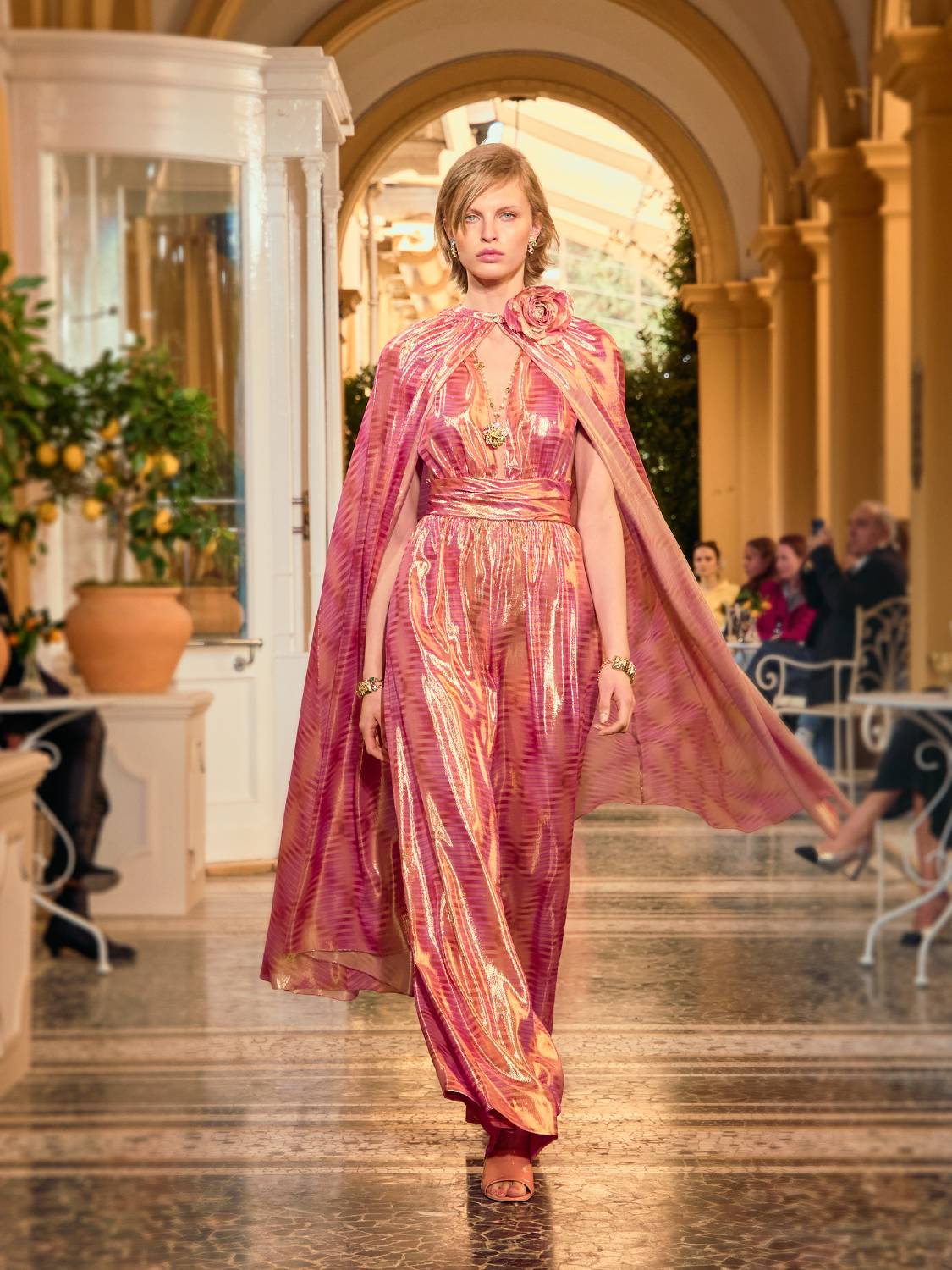 The runway unfolded at Villa d’Este, a historic property originally built in 1568 by Pellegrino Tibaldi as a private villa. Converted into a luxury hotel in 1873, it was a summer retreat frequented by European social elites.
