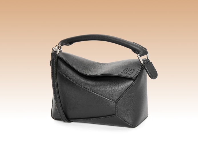 The look: The Puzzle bag is defined by its angular, sculptural shape, designed with a series of interlocking panels that give it a puzzle-like design. It can be carried in multiple ways, depending on how the strap is adjusted, and it comes in a wide range of materials, including calfskin, exotic skins, and seasonal fabrics.