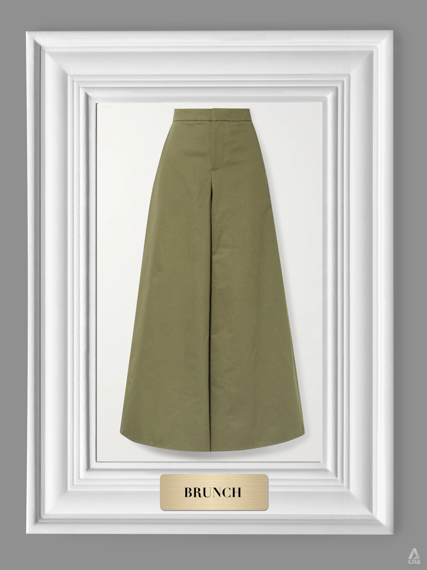 If you are after elegant drama however, you can’t go wrong with Carolina Herrera. The beautiful cut on this pair that’s made from cotton-blend sateen sits flatteringly at your natural waistline for an A-line effect. Match this with a voluminous blouse for a look that is demure yet professional.