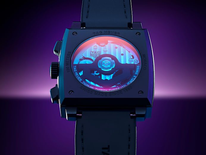 Powering the watch is the Calibre TH20-00, an in-house automatic movement visible through the openworked dial and tinted caseback. Designed for precision and longevity, it anchors the watch’s high-energy aesthetic with technical substance. Limited to 600 pieces, the Monaco Chronograph is paired with a black rubber and embossed calfskin strap accented with purple stitching, a final nod to the colours of the night.