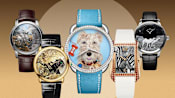 Whether crafted in leather or straw marquetry, painted with enamel, set with rainbow-hued bridges or animated like a miniature theatre, these watches transform the dial into a world of its own.