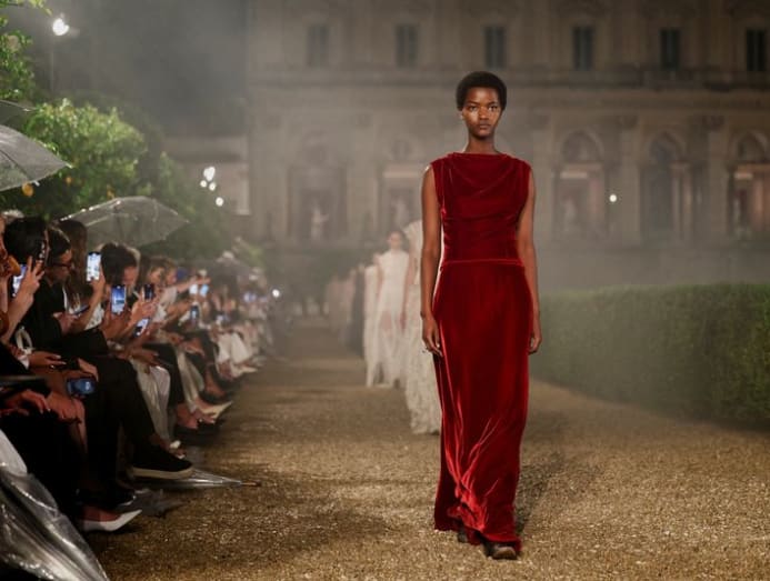 French fashion house Dior showed creative director Maria Grazia Chiuri's cruise 2026 and fall-winter haute couture 2026 collections at a fashion show in the gardens of the Villa Albani Torlonia in Rome on Tuesday (May 27) at night.