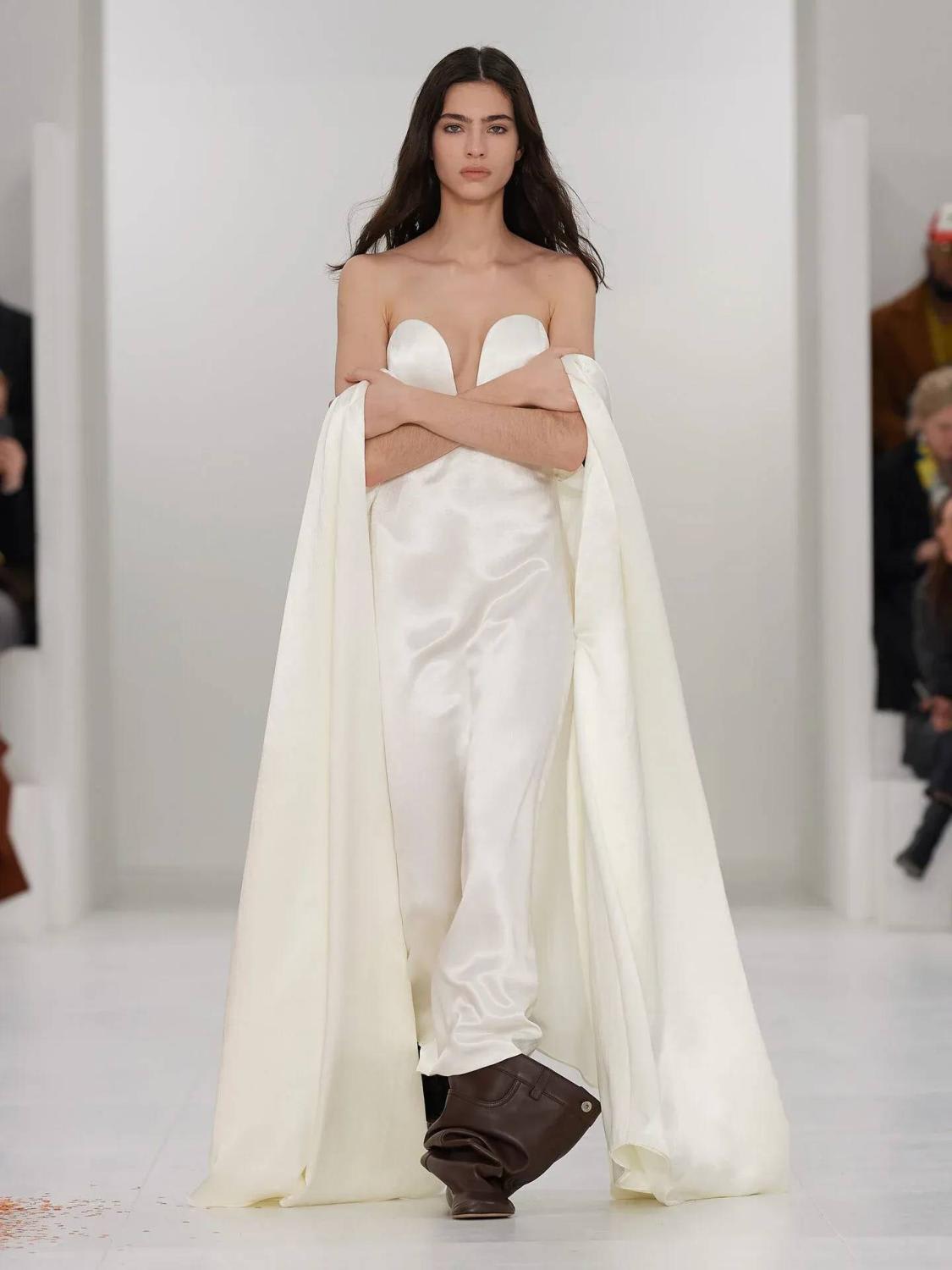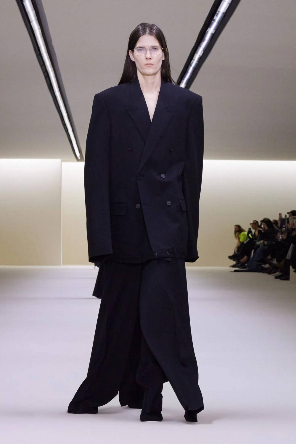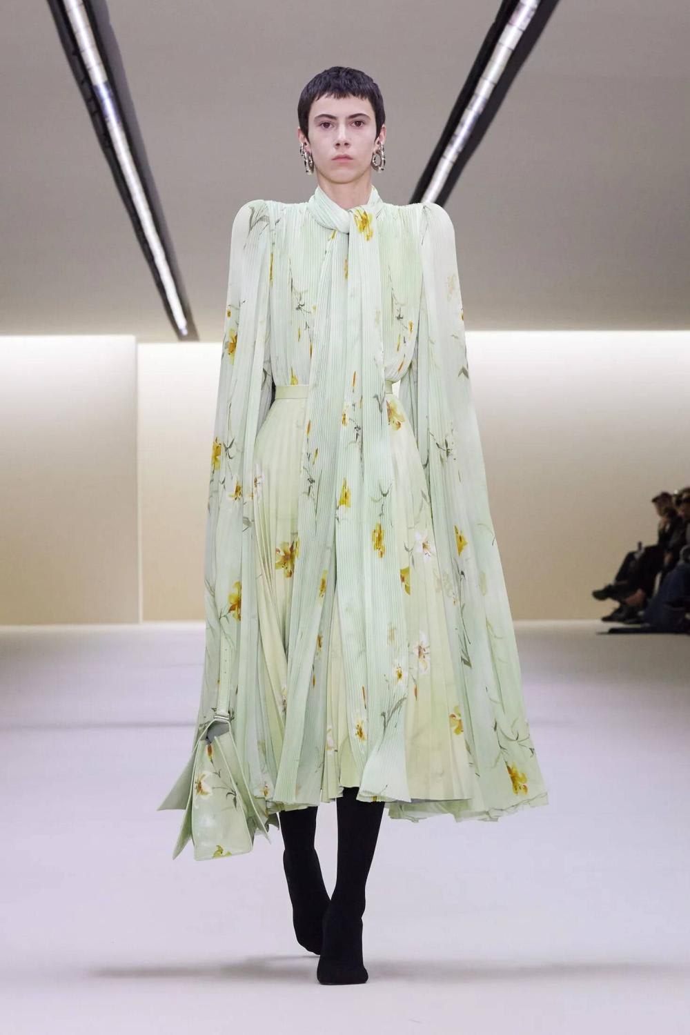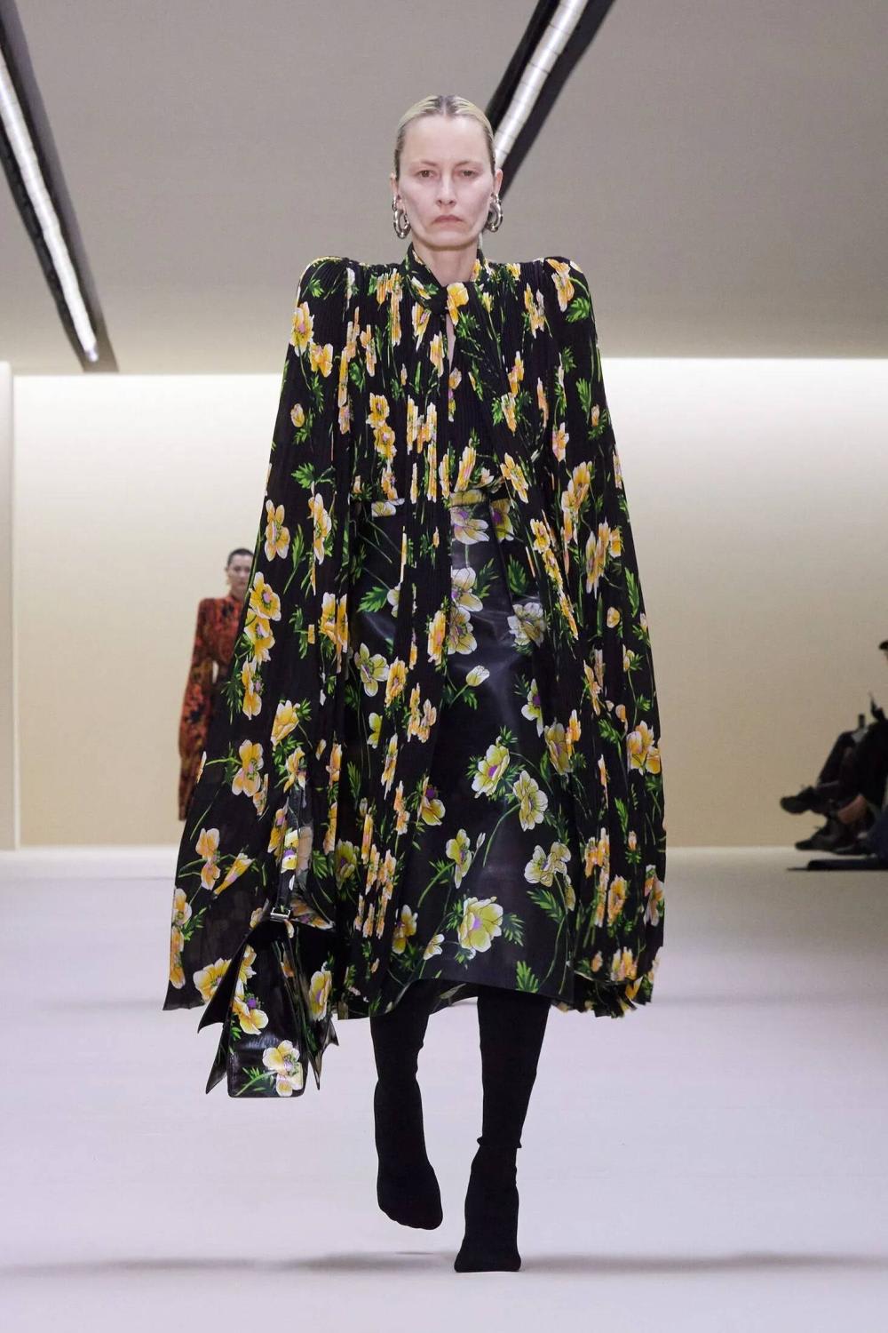 Until last year’s pedophilia ads controversy, which had threatened to extinguish Balenciaga creative director Demna’s unstoppable rise, his progressive and provocative vision had powered and energised not only Balenciaga but fashion itself. This collection, the first one shown after that fiasco and subsequent mea culpa, showed Demna uncowed, renewed and in fine form. He seemed to have shrugged off his provocateur mantle, hunkered down to contemplate the very meaning of clothes, to produce a collection which is both pure Demna, and yet imbued with the old-world elegance of Cristobal Balenciaga — a hat trick — that conflates the past with the future. The focus was on a passage of precision tailoring of deconstructed pants; then a wonderful group of pleated floral dresses that Empress Michiko might have worn — but in Demna’s vocabulary, wasn’t twee at all. It was the shoulders – pagoda, but rounded. He also remade athleisure suits with shrunken shoulders: streetwear, with a futuristic twist.