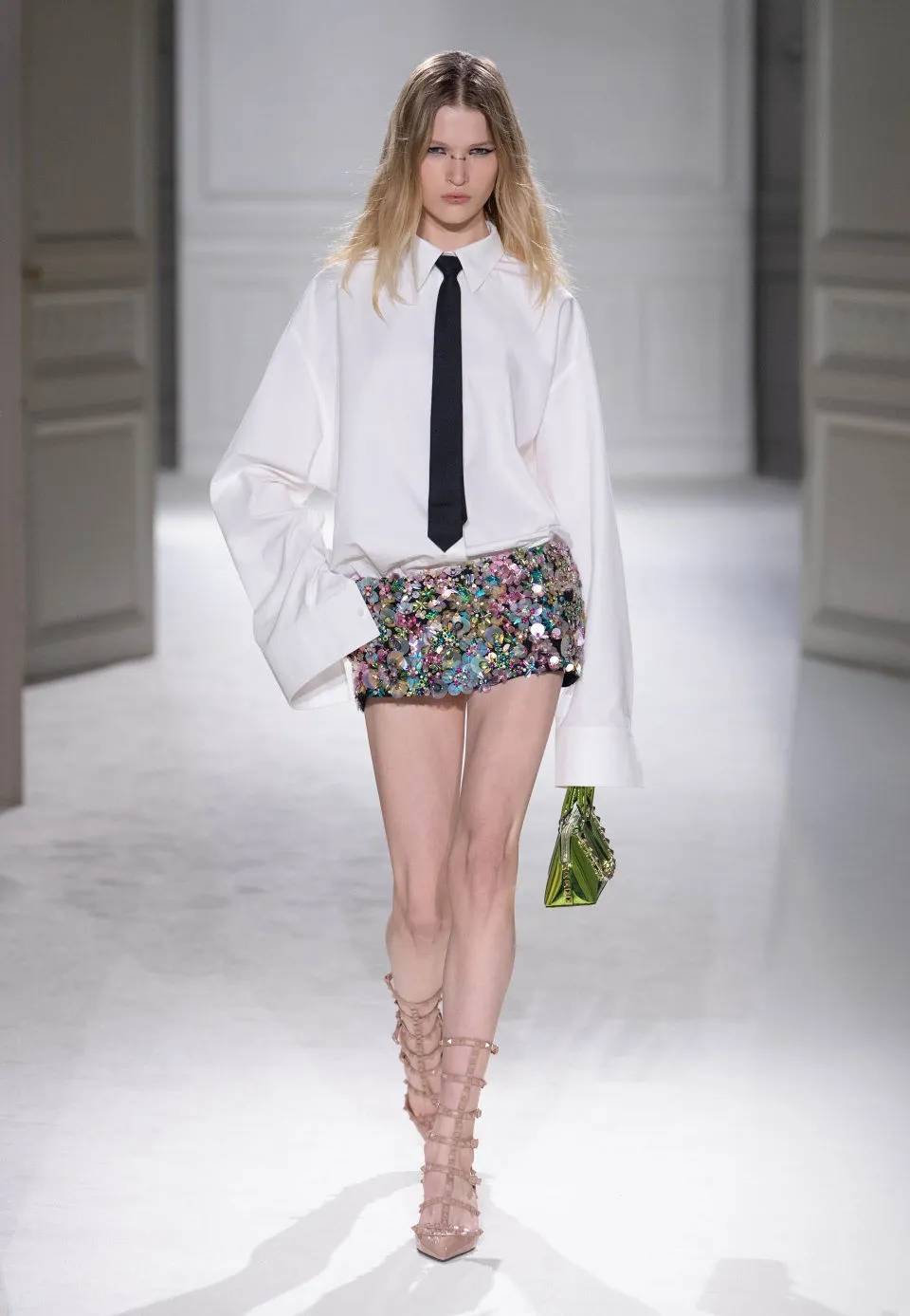 It was also shoulders that made all the iconic YSL codes come alive at Saint Laurent. Creative director Anthony Vaccarello hewed close to all the iconic house shapes – the le smoking suits and dresses all looked like what Catherine Deneuve would have worn in the 1980s, and recalled classic Helmut Newton photos – but made modern with a shift in proportions necessitated by the boldest boulder shoulder to date.