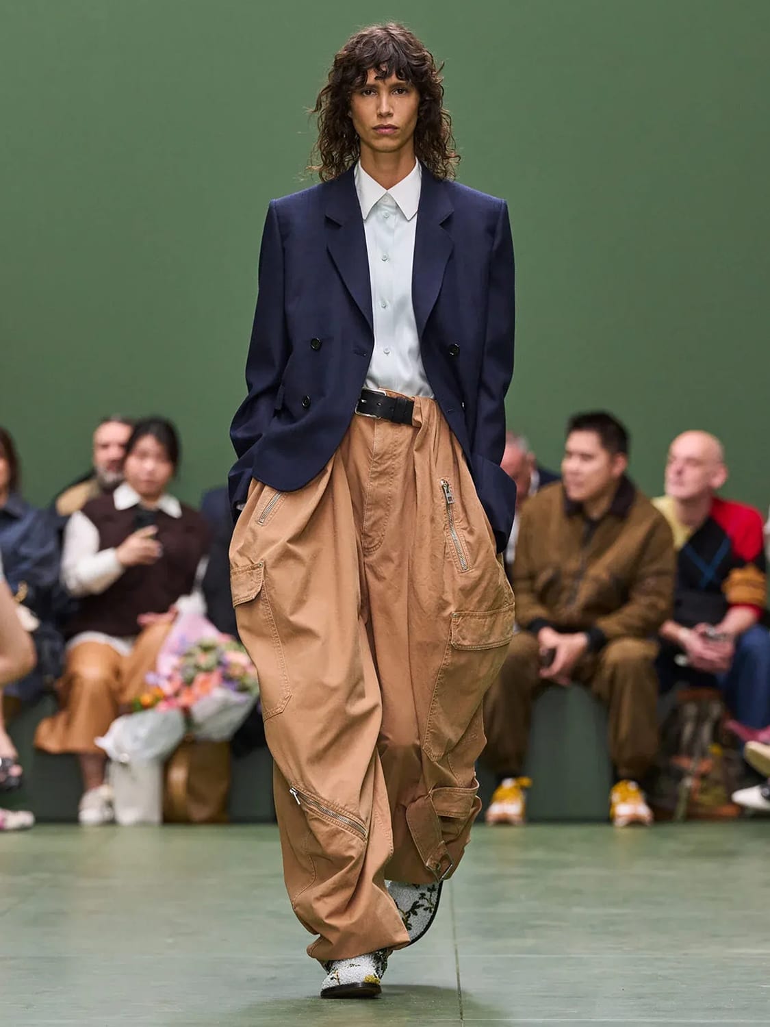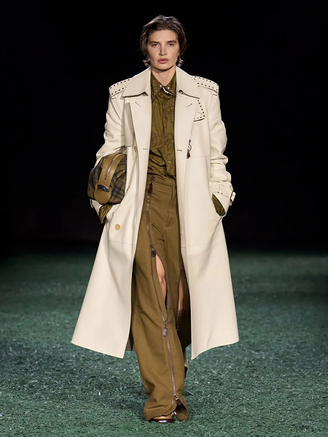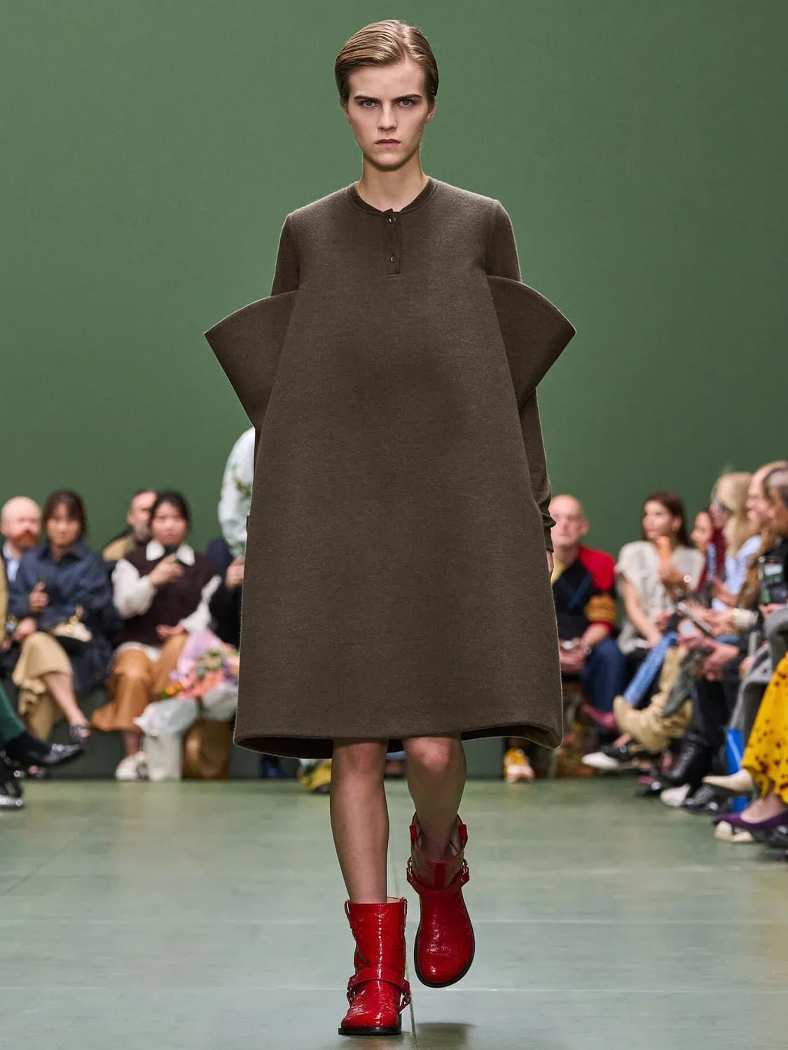Maxi-length skirts with jagged hems; asymmetrical tailoring; deconstructed collars, sleeves and closings; geometric panels and flaps that swoop out of nowhere, breaking preconceived forms – the artistic Cubist motifs of the 1910s are making a powerful comeback this season. Flowing coats and maxi dresses at Bottega Veneta are being reimagined with modern cuts, offering different perspectives on traditional garments; Designers such as Jonathan Anderson at Loewe are playing with overlapping layers and diagonal slits, merging a kind of cerebral elegance with sensuality, as a re-examination of classic fashion shapes seen with 21st Century eyes.
