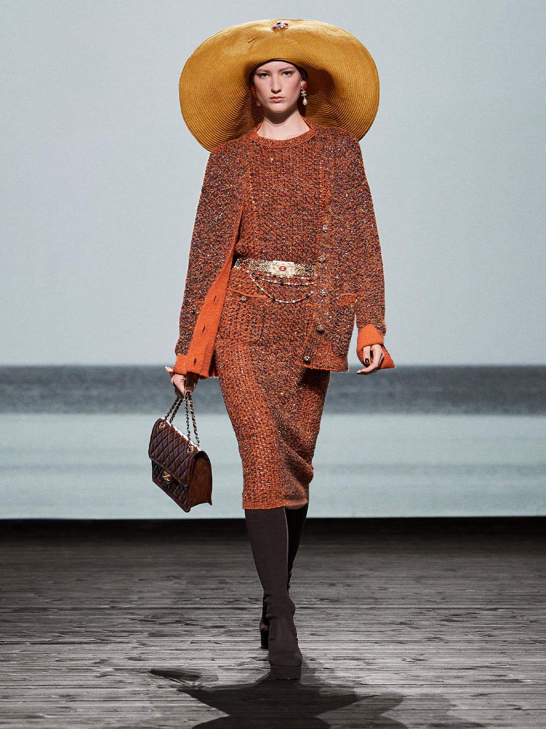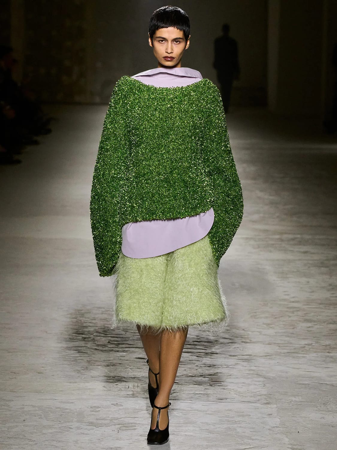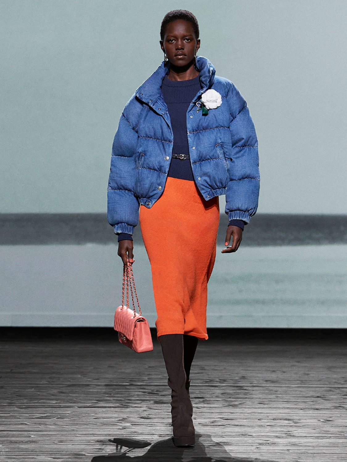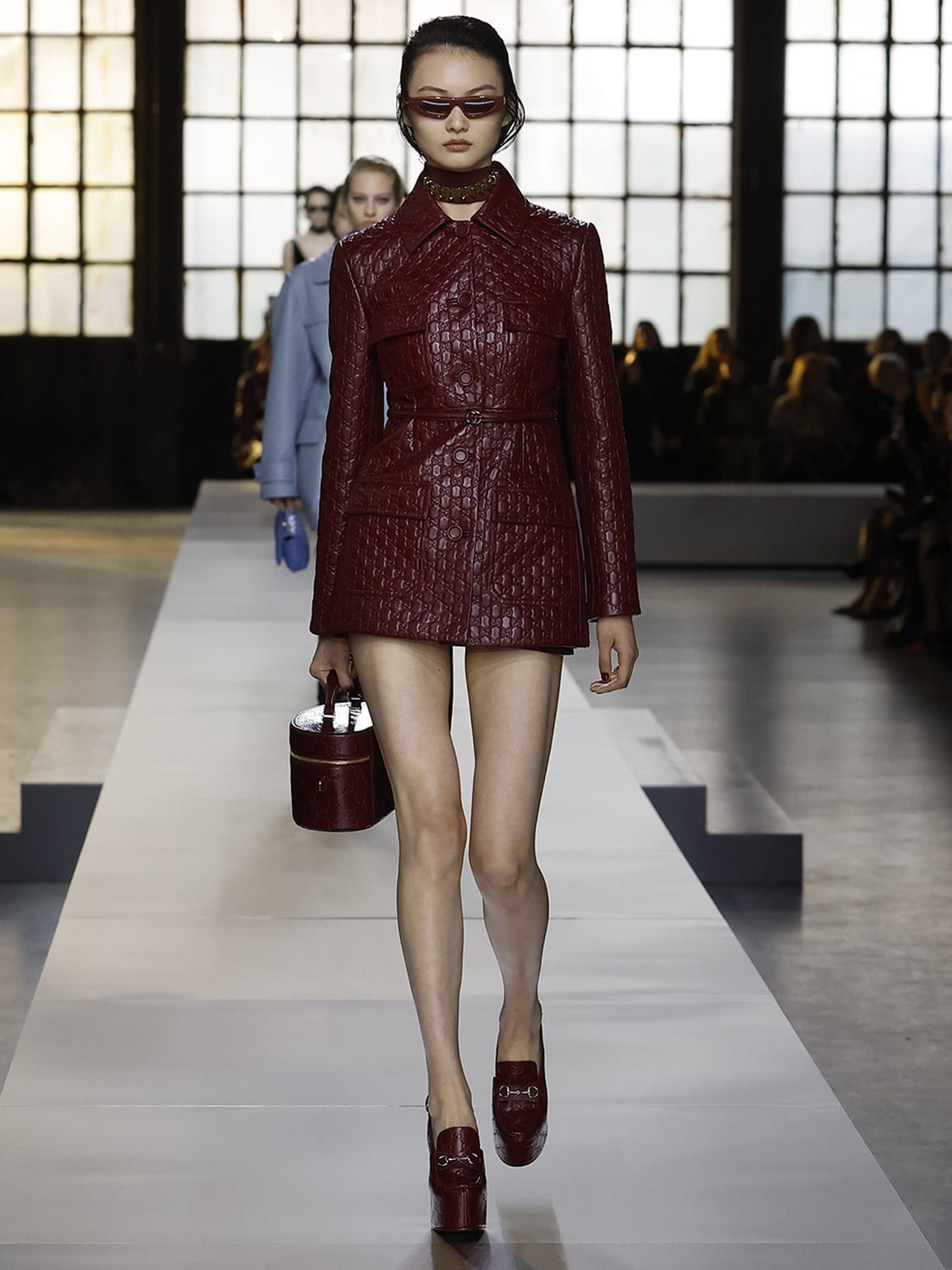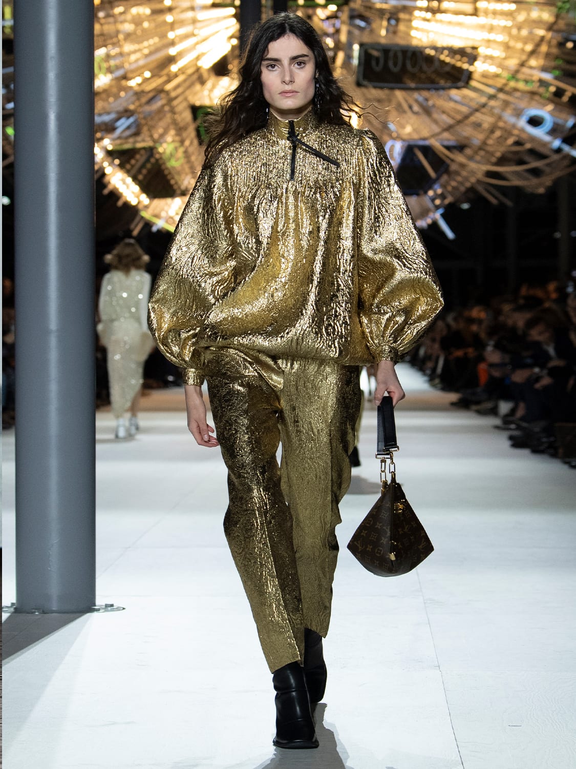 Unexpected texture is key to elevating even the most common of wardrobe staples, with designers showing bold contrasting fabrics like corduroy, boucle, knits and leathers to provide interest to quite standard jackets or skirts. Unusual materials add depth and surprise to any item, making them perfect for updating what you already have as a staple. Think how an elaborately beaded blazer paired can immediately render stylish a plain pencil skirt; or as Nicolas Ghesquiere showed for Louis Vuitton, gold boucle suddenly makes a tracksuit an evening out statement – in luxe comfort. Unusual textures not only enhances visual appeal but also provides a certain weight to signal a change in season, from every day to festive.