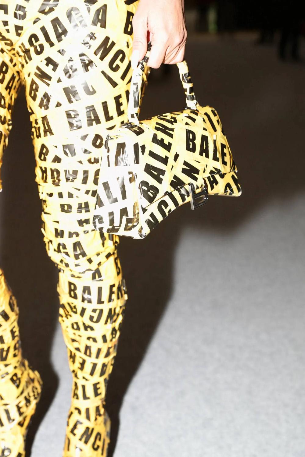 In October, Kardashian was mummified in Balenciaga-logo duct tape for the Balenciaga fall 2022 show. She was bound from chin to toe, leaving only her hands free to claw at the brand’s Hourglass bag (taped to match). She needed help just to walk, and she climbed stairs sideways, at a glacial pace. The plastic tape crackled and emitted gleeful squeaks with every painful step; she couldn’t go to the ladies, she couldn’t bend, or reach out for an eclair. All this for clicks. This is clickbait fashion.
