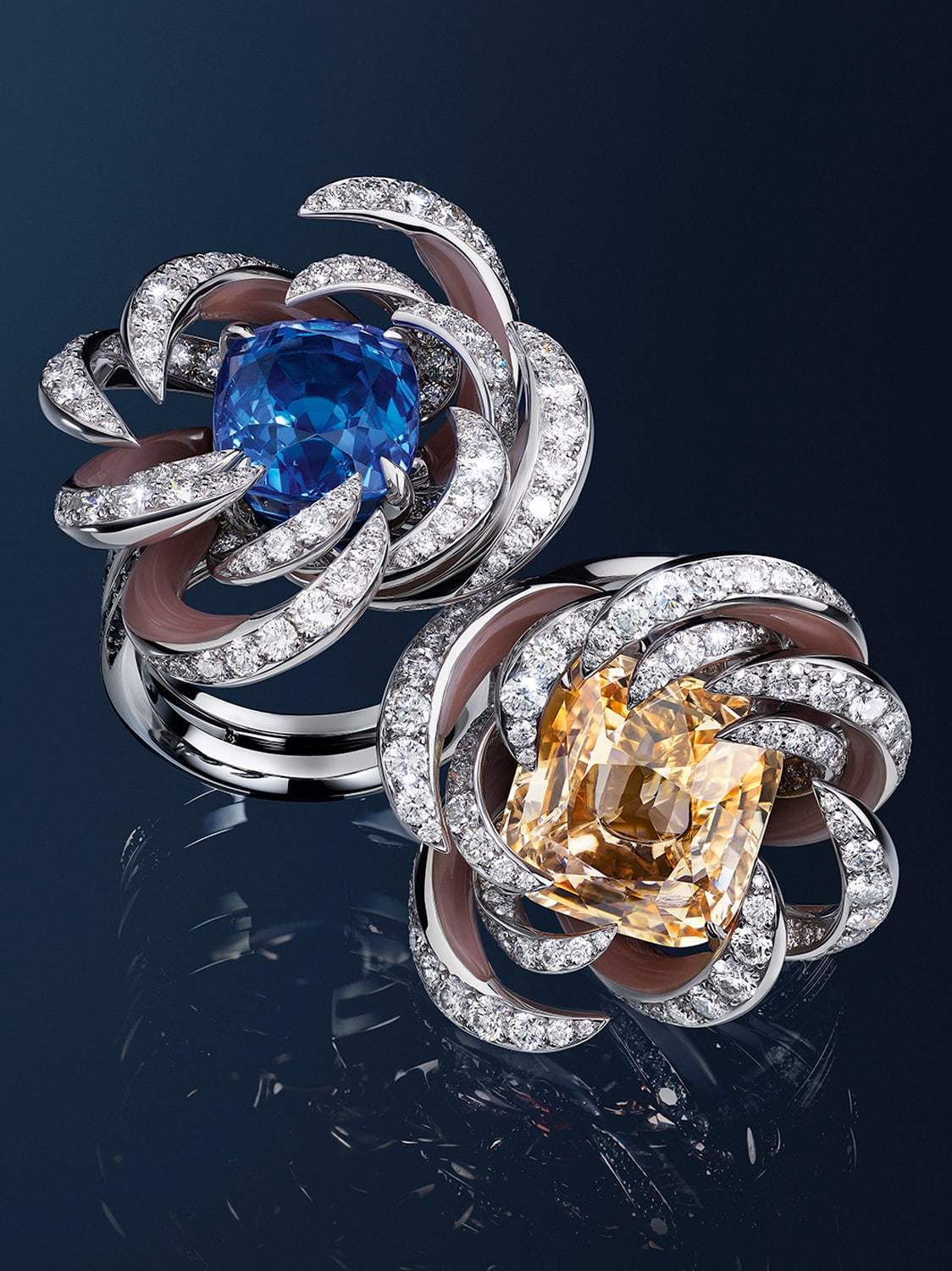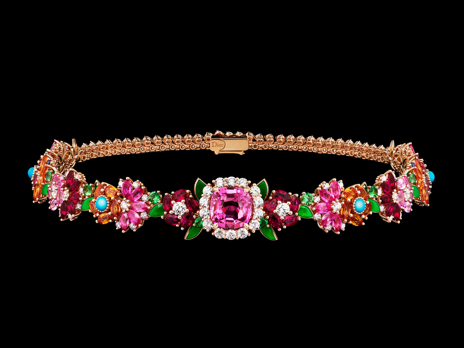 Also turning her discerning eye to flowers is Dior’s artistic director for jewellery, Victoire de Castellane, who has expanded the House’s floral vocabulary with its most extensive high jewellery collection to date. Comprising 170 designs that draw on the late Monsieur Dior’s legendary love for blooms and gardening, Les Jardins de la Couture is formed by four chapters: Galons Fleuris and its pastoral motifs, Tres Cher Dior with its voluminous relief-set gems, Buissons Couture with its dainty wildflowers and Mini Milly, which brings to life Christian Dior’s garden at Milly-la-Foret. As with her other collections for Dior, these creations — at times whimsical and others regal — burst with colours, vitality and daring femininity.