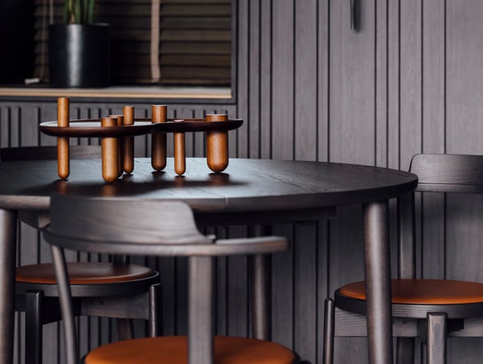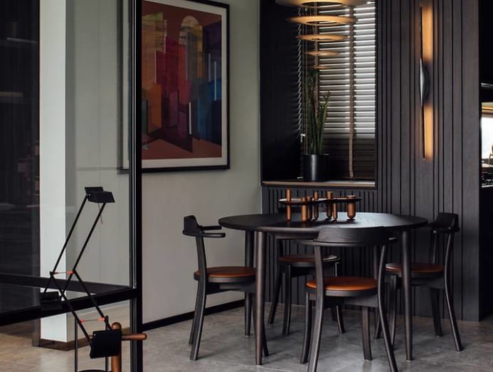 Interior designer Joey Khu elevates the ambience of this modestly-sized home by reducing visual clutter, increasing natural light and spatial flow, and employing a dark, cosy palette.