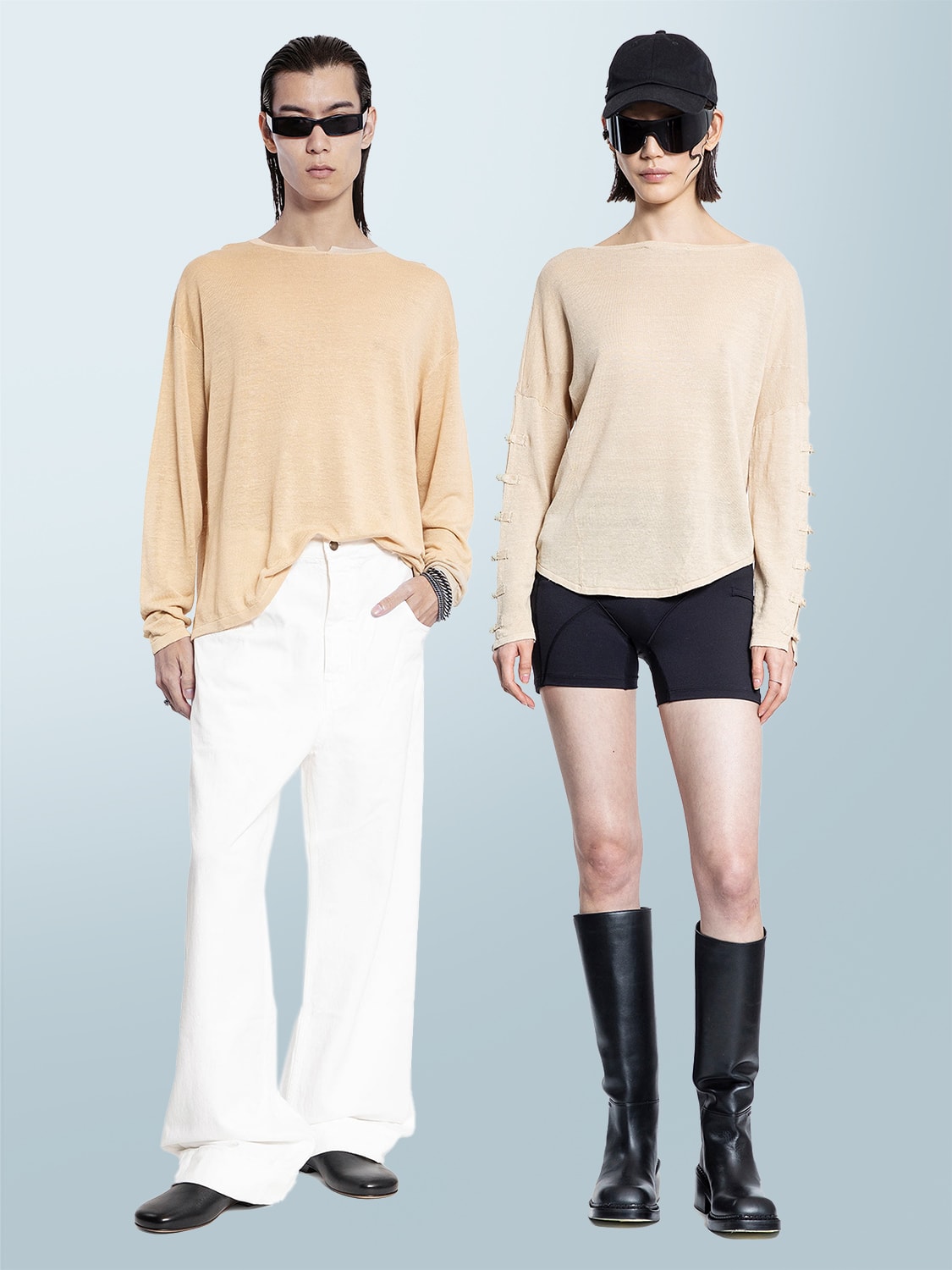 Senza Stagione (Italian for "seasonless") is striking for several reasons. The first is that it marks a philosophical departure as much as a sartorial one. Though nominally divided into men's and women's sections, the collection is refreshingly fluid — women can easily slip into the men's pieces, while men, if sufficiently liberated from fashion's rigid gender norms, could just as comfortably wear items from the women's line.