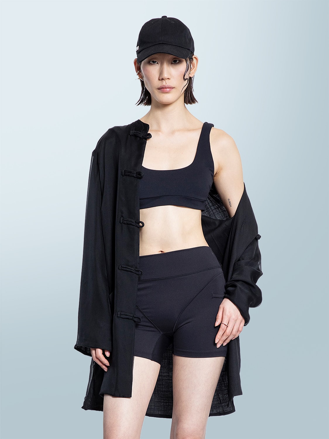 "Everything we do at Lisa Von Tang, we try to make it seasonless," said Crosswhite. "This means we can keep on refining the same outfits — add a loop, swap out a material, refine a fit. I like redoing the same thing which is not easy with a seasonal show. This way, I can slowly change things. It's not sustainable environmentally and energetically to keep creating a new collection for each new season. I did it at the beginning of my career, but I don't want to do that anymore.