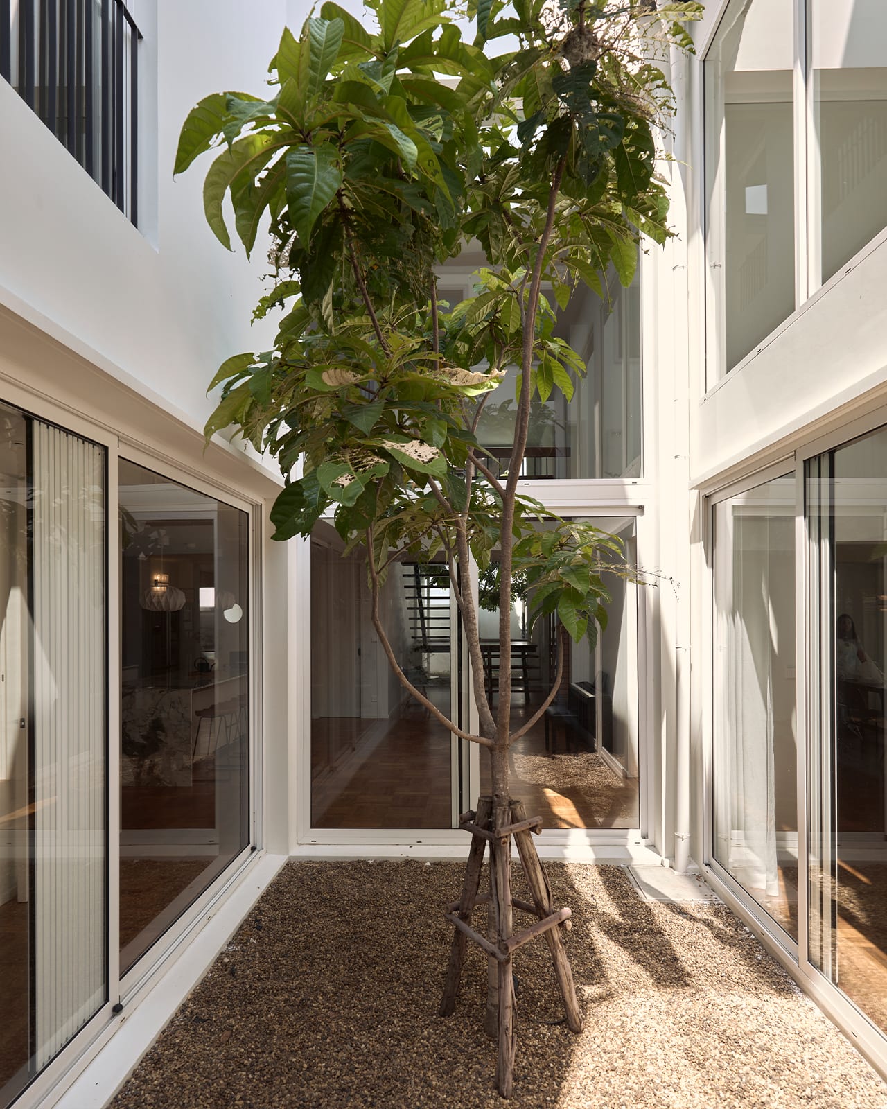 The old house had other shortcomings. It had low ceilings and little daylight, due to small wooden windows, thick-framed doors and a compartmentalised layout. The flow between spaces was further impeded by a central staircase, which took up a large footprint across the first and second storeys.
