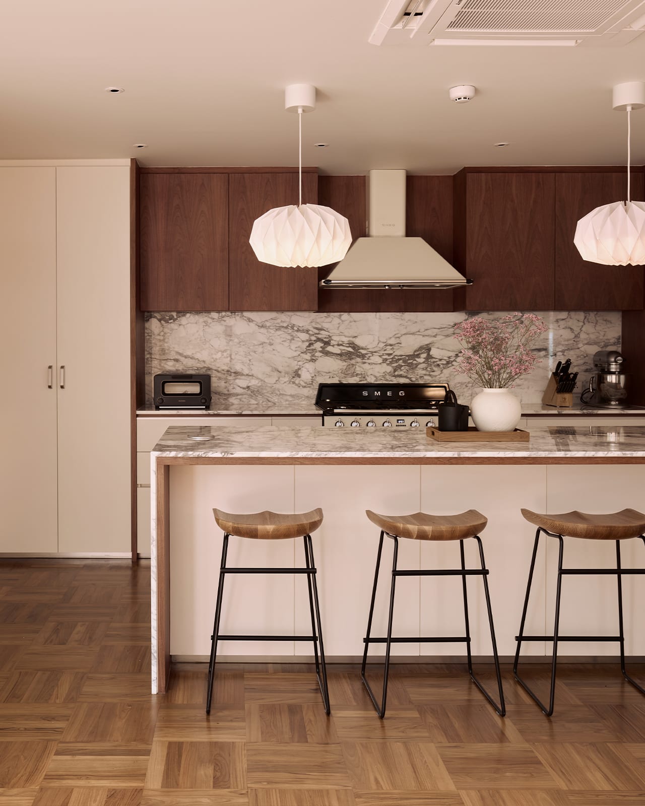 By creating good-quality architecture, the owner would not feel the need to “over-decorate”. Instead, she could focus on filling the home with furniture and objects she loves. These include vintage and second-hand pieces such as Eames chairs and Louis Poulsen lamps in the dining room.