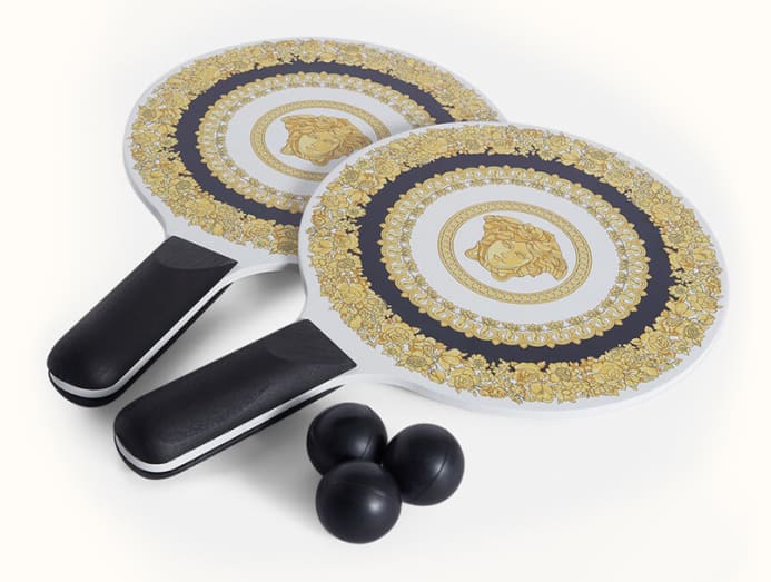 A day out at the beach with the sun, sand and sea promises oodles of fun. Grab a partner and show off your beach tennis skills with these chic Versace Beach Rackets, featuring a Crete de Fleur print and the iconic Medusa head.