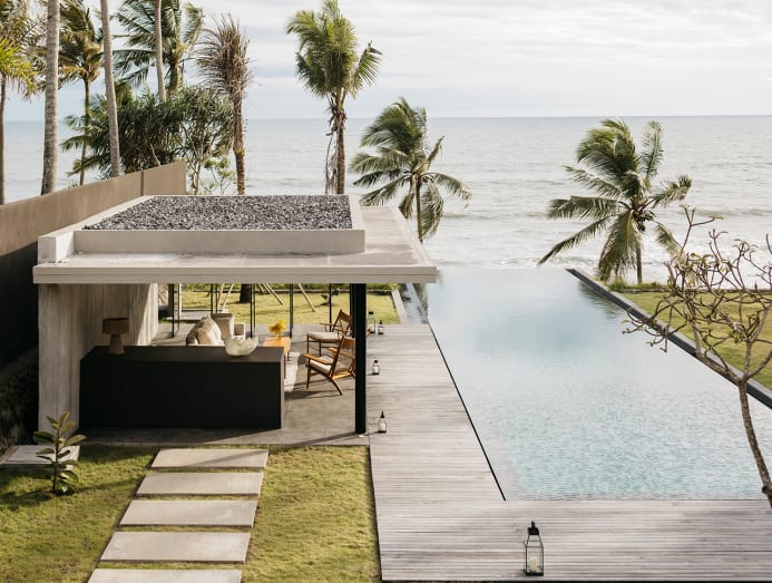 In this holiday home in Bali, all the bedrooms and bathrooms have an amazing sea view