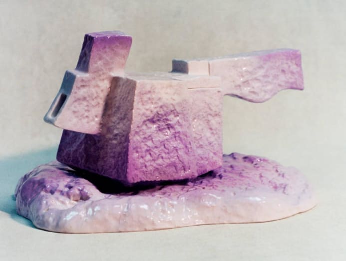Juergen Teller recently photographed Rose Wylie for Loewe’s Spring Summer 2025 pre-collection campaign. Her teapot was inspired by British Royal Albert china tea sets, which are identified with beautiful floral prints, soft pastel shades and refined gold gilding. But the British painter has made it her own with an exaggerated lid and fluted details.