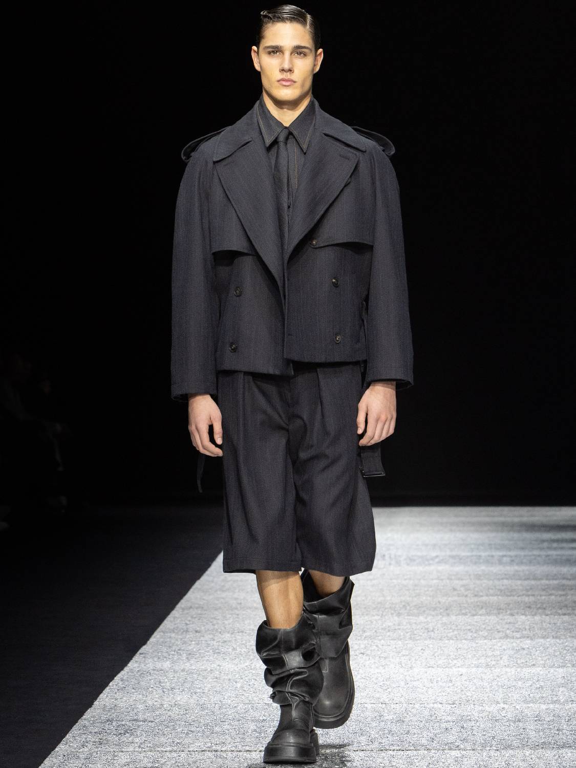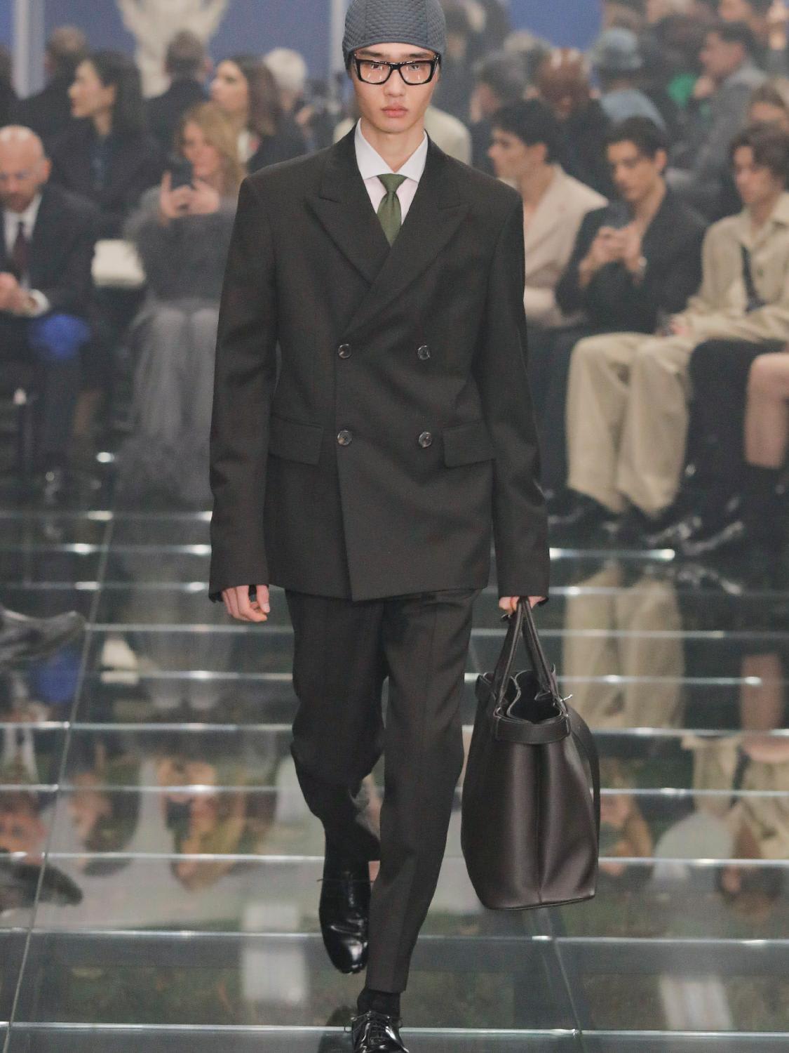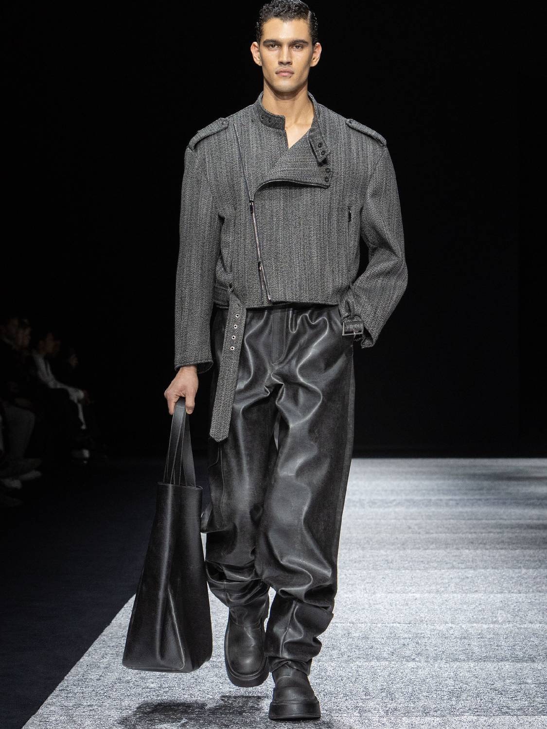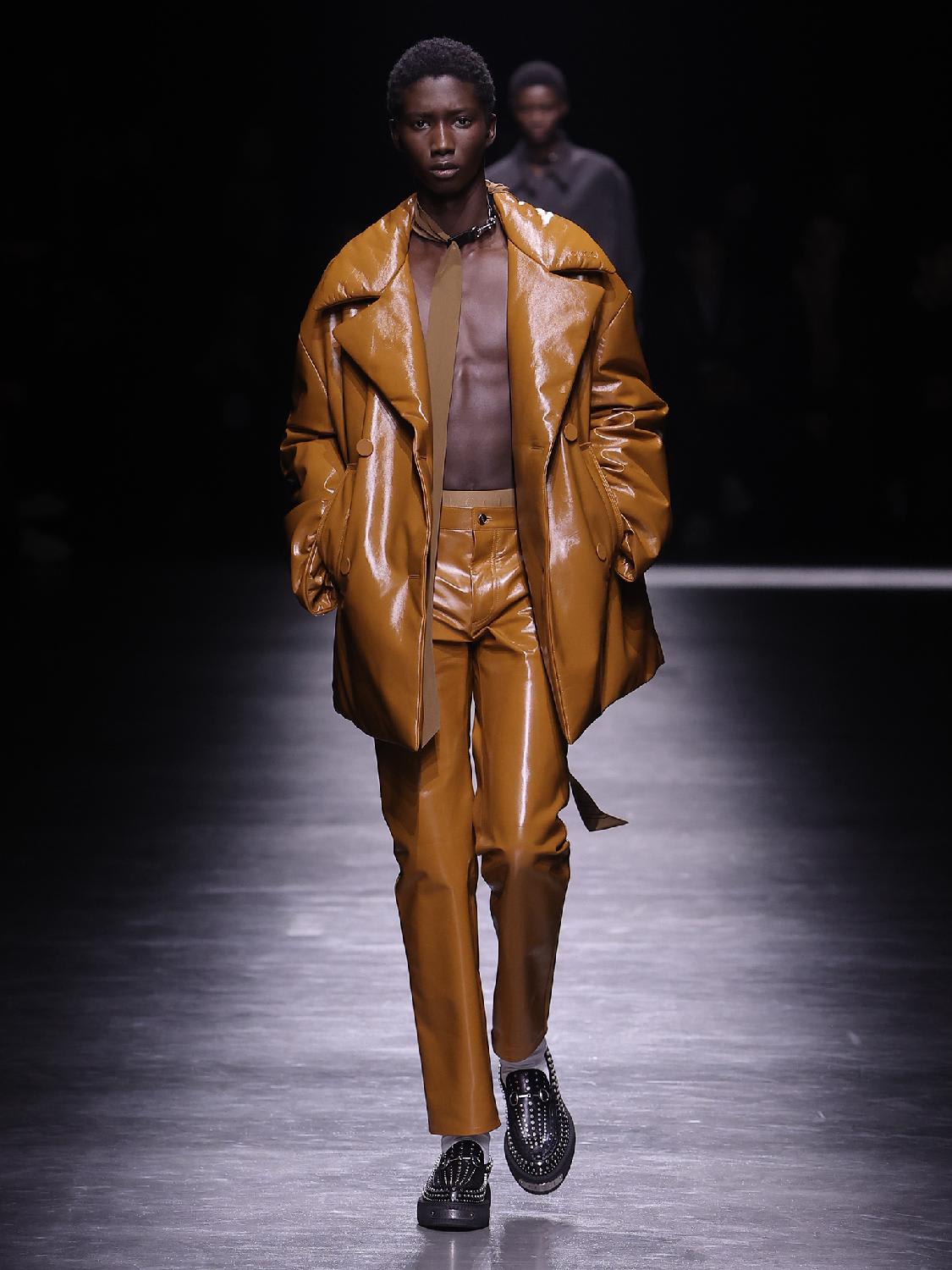 That we live in a world teetering on the edge of another world war is in no doubt evident in this collection that seethes with military inspiration. The collection sent out an army of Emporio Armani soldiers in a bold, clean-cut silhouette with broad, defined shoulders, draped in a sea of monochromatic earth tones (this is shaping up into a fall/winter 2024 trend), which is very much in the Armani vernacular. Do remember that this 1980s style of tailoring, now making a comeback because it is a classic masculine look, is a house signature which Mr Armani had made his name on, and put Italian menswear on the world fashion map in the 1980s.